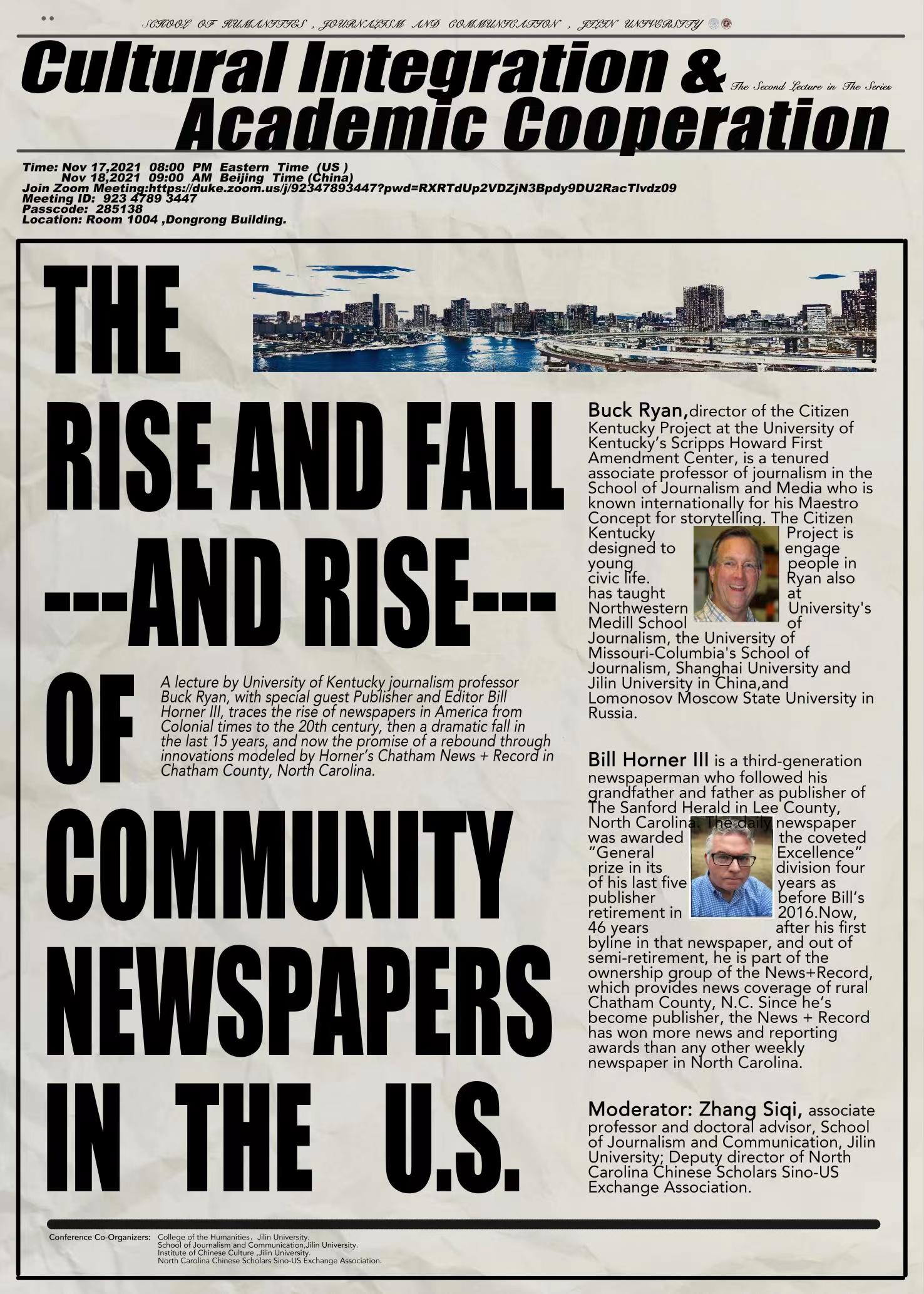 主讲人简介:巴克•瑞恩教授是肯塔基大学“斯克里普斯霍华德第一修正案中心”的“肯塔基公民”项目主任,是新闻与媒体学院的副教授。他因其讲故事的“大师概念”而闻名世界。瑞安教授还曾任教于西北大学梅迪尔新闻学院、密苏里堪萨斯大学哥伦比亚新闻学院、中国的上海大学和黄色韩漫