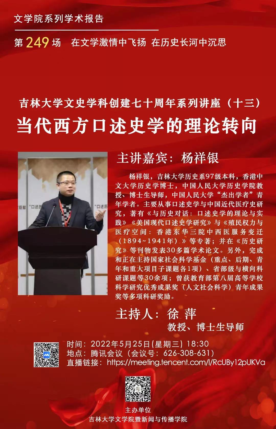 讲座题目:当代西方口述史学的理论转向