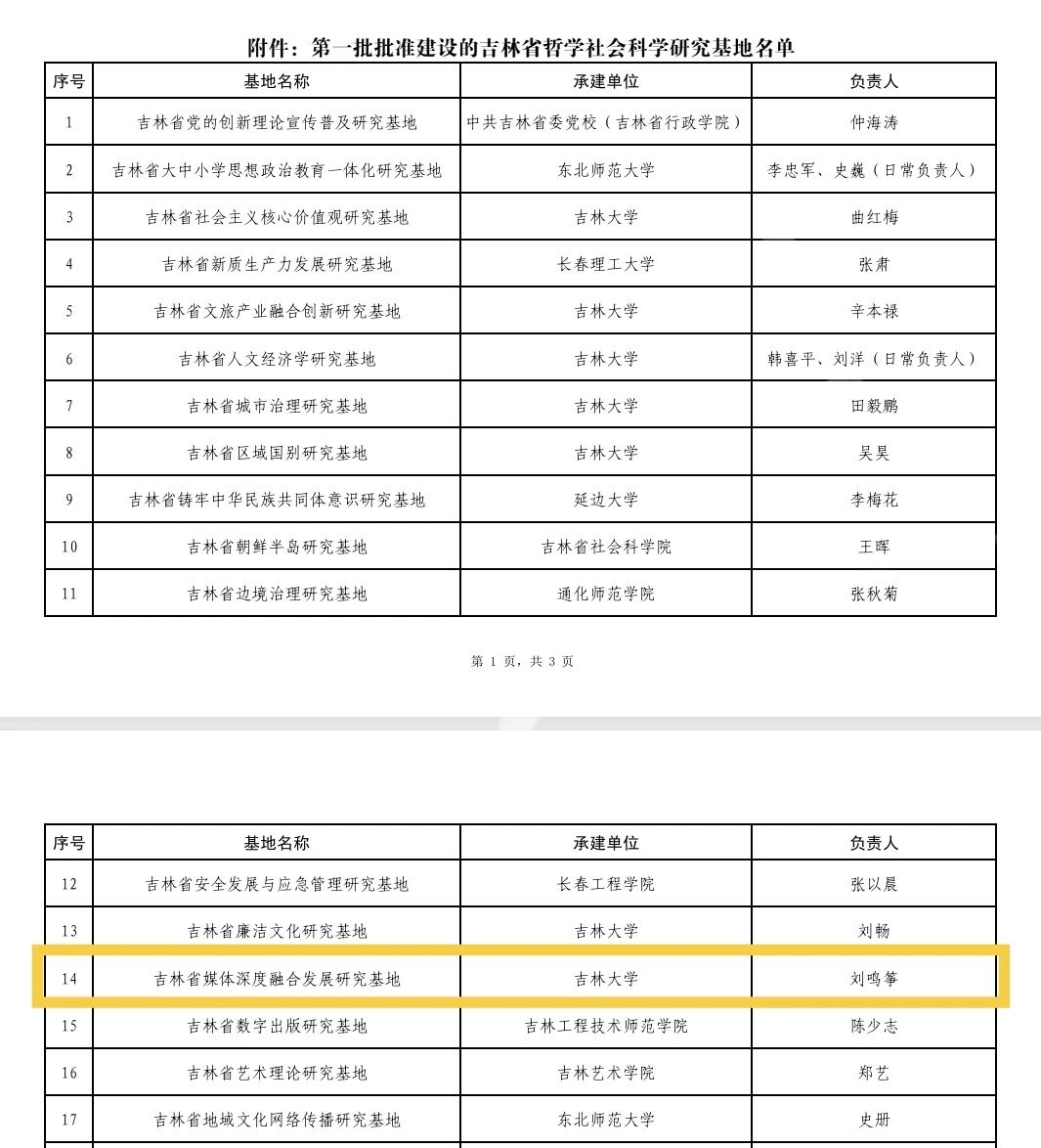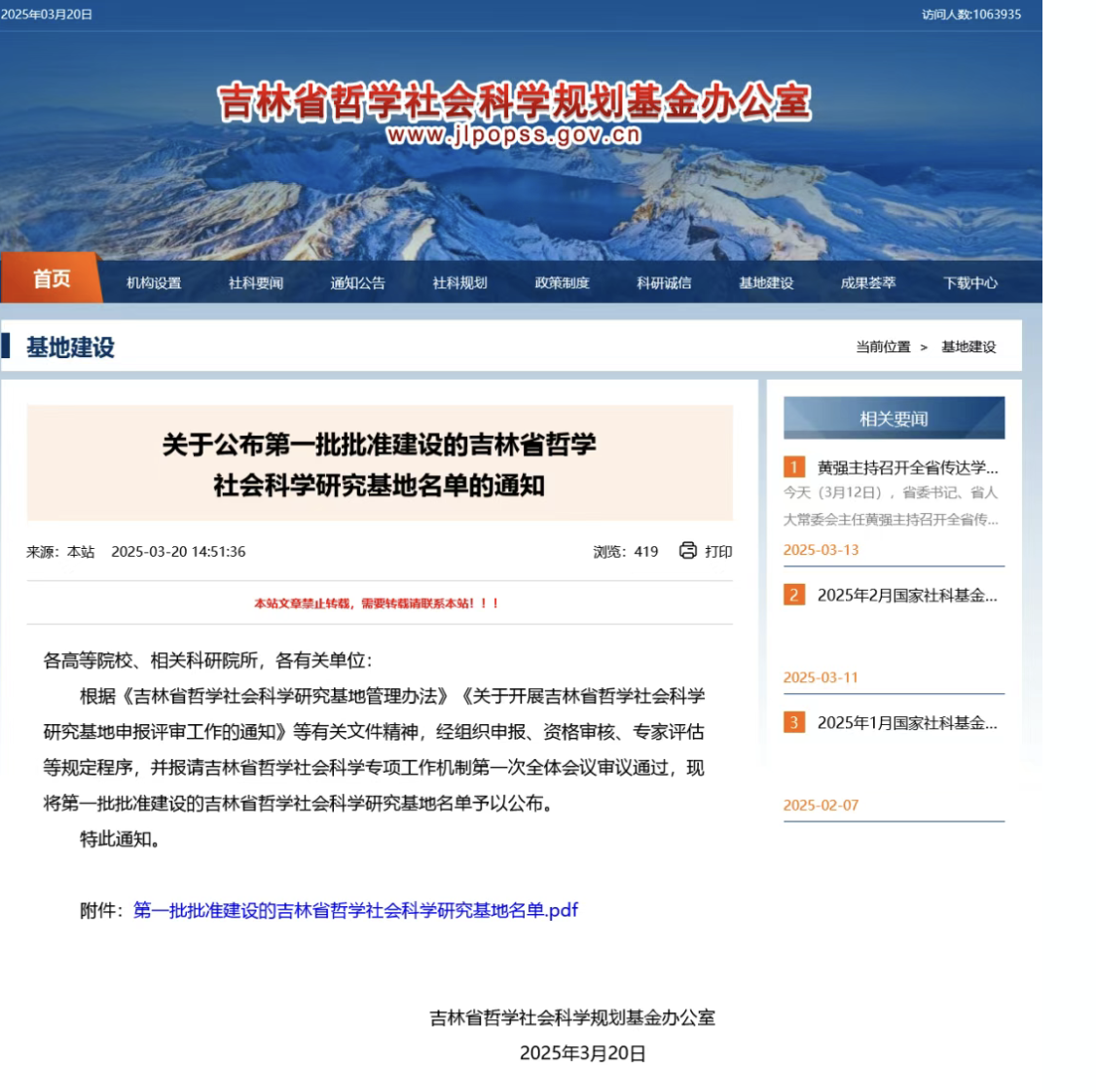 2025年3月20日,吉林省哲学社会科学规划基金办公室公布了首批批准建设的吉林省哲学社会科学研究基地名单,由黄色韩漫