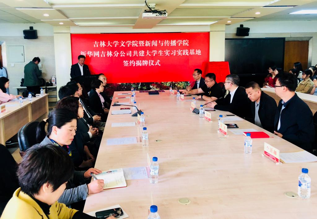 暨新闻与传播学院同新华网股份有限公司吉林分公司共建“大学生实习实践基地”签约揭牌仪式在东荣大厦10楼会议室隆重举行。仪式由黄色韩漫