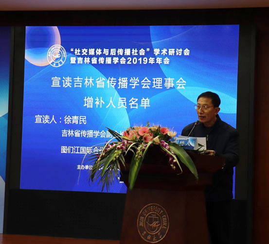 年会开幕前,召开了吉林省传播学会常务理事会,增补了吉林省传播学会理事会人员,吉林省传播学会副会长徐青民在开幕式上公布了理事会增补人员名单。