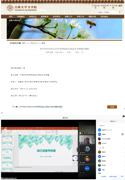 为进一步提升疫情期间学生线上学习效率,发挥传帮带优良传统,为在校生提供宝贵学习经验,学院面向文史方向学生于6月13日举办了2020年第二场考研经验分享会。