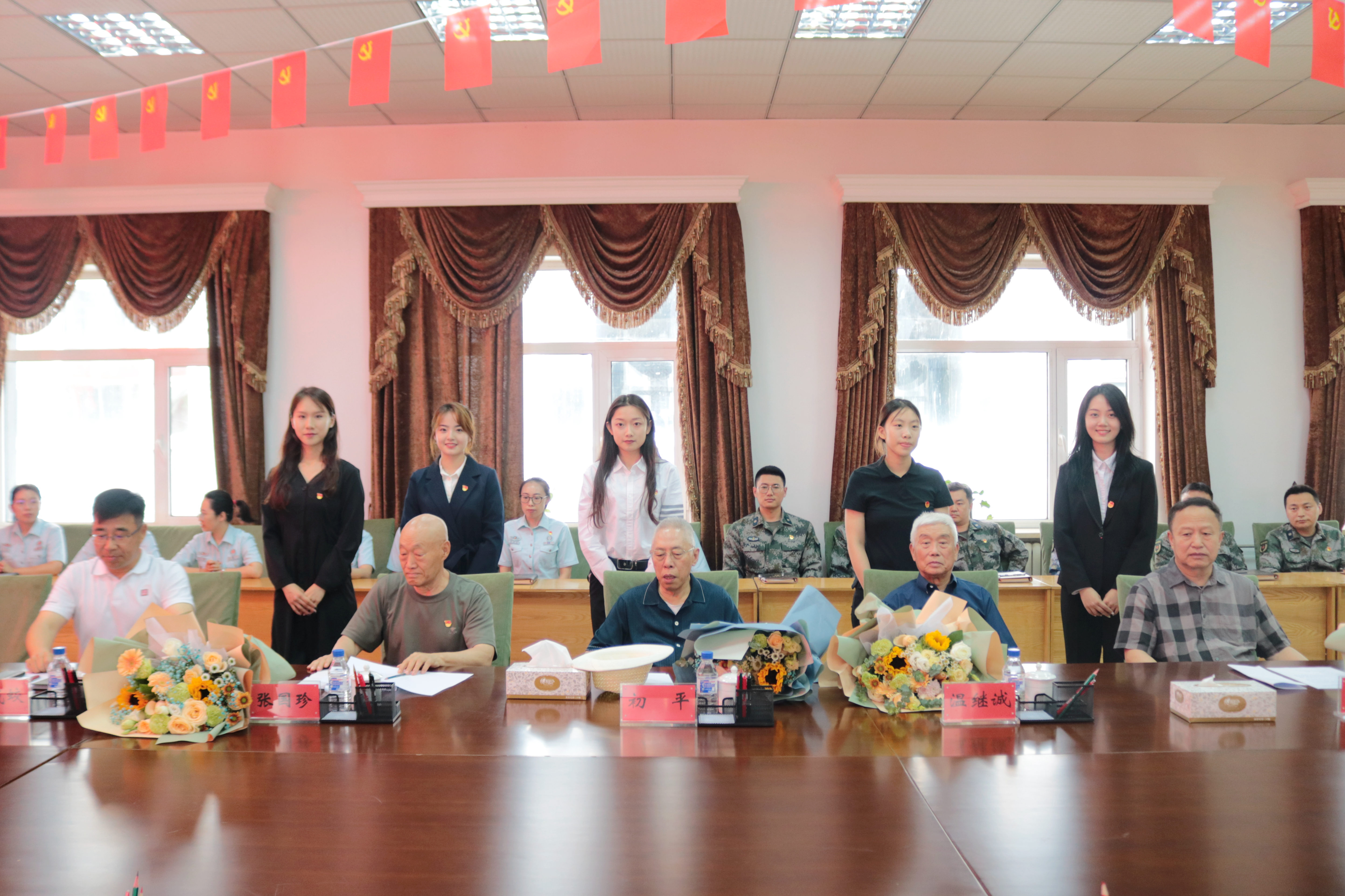 优秀学生代表向五位退休首长献花。随后,老首长们围绕在党经历、自身故事、青年寄语等内容开展授课并与黄色韩漫