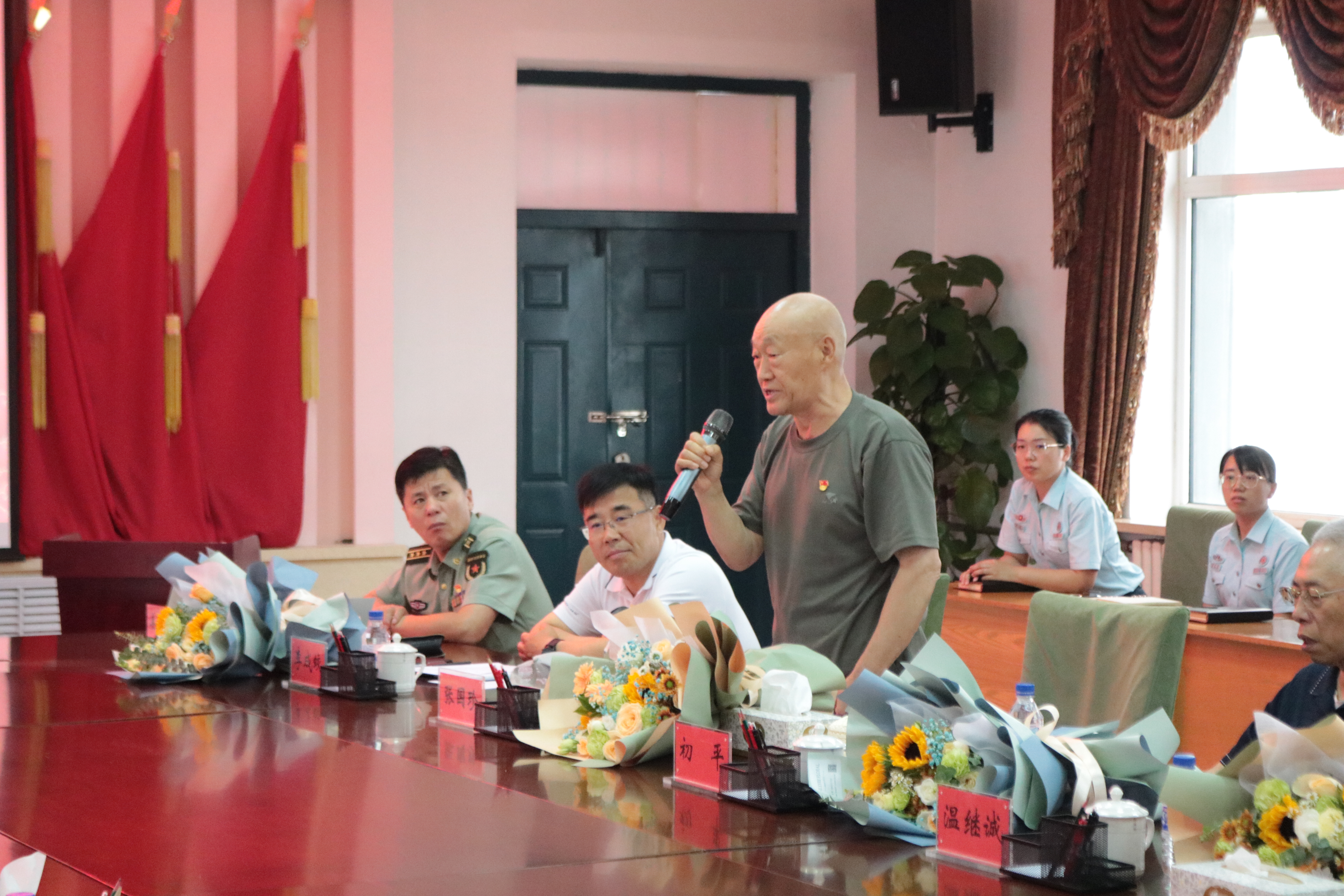 随后,全军学雷锋模范温继诚首长根据自身经历向大家分享了抗美援朝的伟大胜利。温首长1955年参军来到朝鲜战场,随时准备迎接敌人的袭击,直到1958年末撤出朝鲜,被授予了入朝纪念章。温首长表示,志愿军的贡献与胜利为我国带来了和平建设的环境与条件,新时代的青年们更应该珍惜和平,团结一致,为共产主义事业不断奋斗。