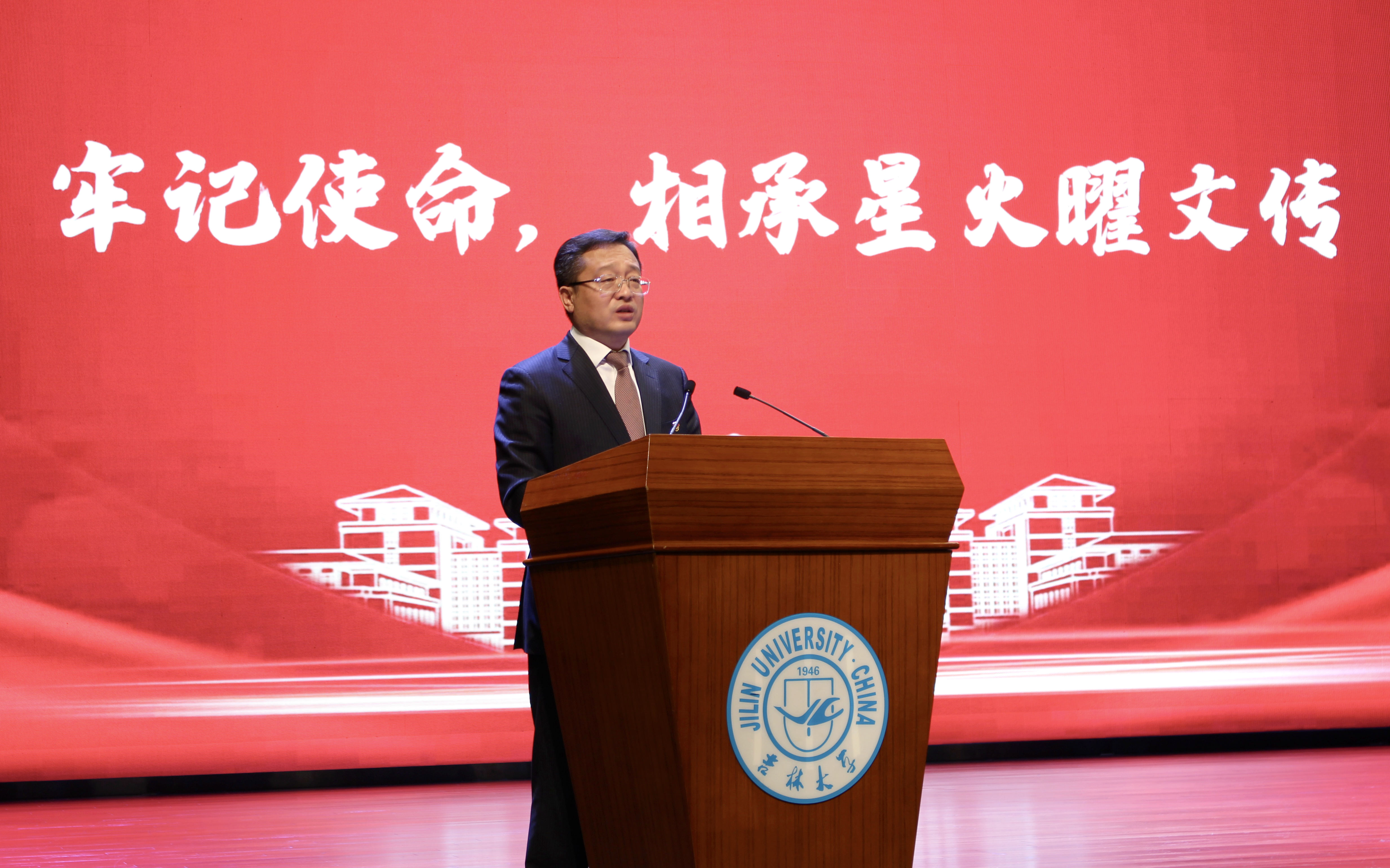 他表示,在人生新的起点,希望新同学能够秉承文传人的红色传统和优良品质,做到“文、学、新、传”——“文”,是要做一个有文化自信、文化内涵与文化修养的人;“学”,是要提升对于专业的学习、自身意志品质的学习、性格的学习、与人交际沟通能力的学习的能力;“新”,是希望同学们要具有创新意识和创新能力;“传”,是说作为吉大人应传承红色基因、赓续红色血脉。