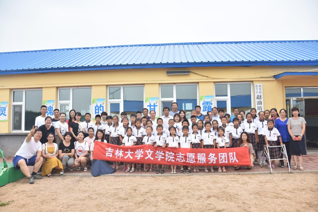 由兴波教授与几位研究生同学怀着难以抑制的激动心情从长春站出发迈上这条难忘的志愿服务之旅。经过两个小时的车程,志愿者与青年干部一行16人来到搜登站镇赵家油坊小学,村支部书记姜铁铭及崔海校长对志愿者们的到来表示了热烈欢迎。崔校长介绍,虽然正值暑假,但是孩子们听到这个消息都非常开心,早早地来到教室,也感谢青年志愿者们组织这样有意义的活动,既丰富了孩子们的暑期生活,也给他们带来了快乐和温暖。
