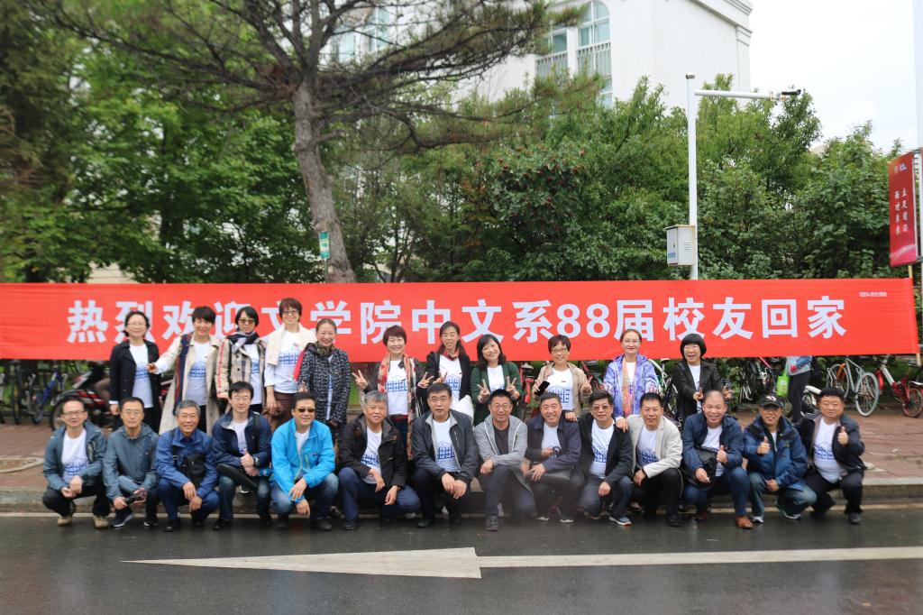 一定为你们提供最好的服务!”接着,84级中文系的校友们也纷纷畅所欲言。班长苗越学率先发言,回忆起了自己的在校时光。他讲道,最令他触动的是校史馆中陈列的那幅唐敖庆先生的眼镜,这令他想起了唐敖庆先生为他上过的那堂党课,这一切他都还记忆犹新。84级中文系书记郭娟随后发言,她谈到:“作为吉大人,始终都念着吉大对自己的培养,在各行各业始终都在努力,争取不负吉大对自己的培养。”84级校友杜占明、许燕姬、闫长斌等人也纷纷发言,校友们表示回到吉大就像回到家一样温暖,他们也时刻关心着母校的发展,并且愿意为母校的发展贡献出一份力量。座谈会后,84级校友们与各位老师在东荣门前合影留念。
