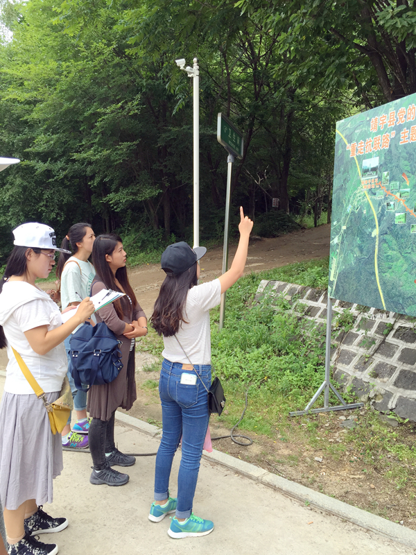 图14,调研团队在杨靖宇将军殉国地景区内做游客问卷调查