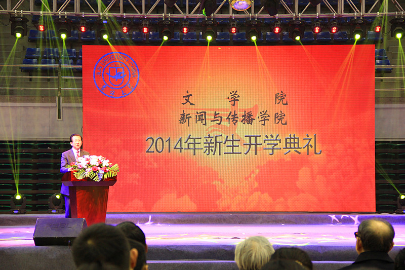 院长兼新闻与传播学院院长徐正考向新生致以热烈的欢迎,随后简单地介绍了学院的情况,同时提出几点希望:以宽广博大的胸怀对待身边人、身边事;学会独立思考问题,培养独立思维;强化安全意识,付出一定行动;培养自觉学习习惯,博览群书;尊重教学学术规范,严于律己。