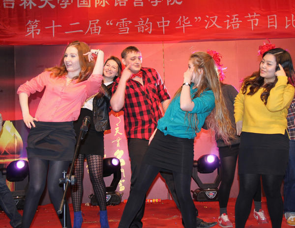 留学生们载歌载舞,用心打动评委,用爱融化冰雪。情景剧《吉大好声音》、歌舞剧《和解》、小品《如此选美》、音乐剧《白雪公主》、舞台剧《天哪》表现出留学生对中国人生活的细致观察,情节紧凑、语言生动;在舞台剧《梁山伯与祝英台》中,留学生们发挥了充分的想象,用现代人的观念重新诠释并改编了古典爱情故事,生动别致的情节设置、诙谐的对话,把大赛现场的欢乐气氛推向高潮。