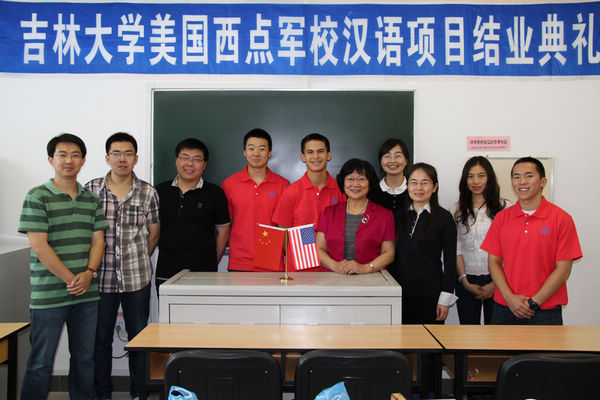 -美国西点军校汉语研修项目全体任课教师,我校国际合作与交流处相关负责人,美国西点军校领队黄红宇及全体学员参加了结业式。
