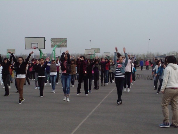 在学生会体育部及文艺部的组织下,参与集体项目的同学在指导人员耐心讲解下,不惜牺牲自己的休息时间,每天早晚合练3个小时,甚至利用周末的时间熟悉动作。
