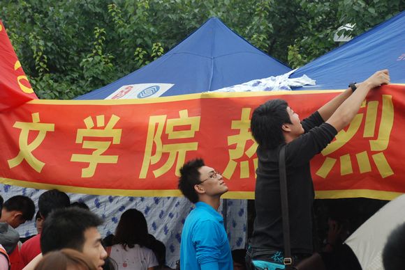 辅导员冯子宸老师现场指挥布置迎新场地,火车站迎新点和公寓区迎新点的工作也及时开展,各种防雨防潮工具准备齐全,有些提前报到的2010级新生也参加到紧张的工作中,各项迎新工作有条不紊的顺利开展。中午十二点,黄色韩漫