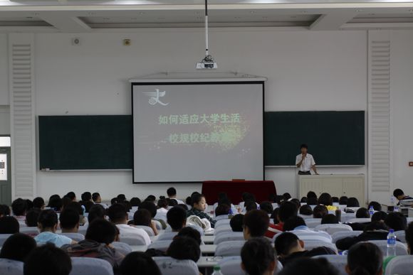 辅导员冯子宸老师做了《如何适应大学生活及新生校规校纪教育》的报告。