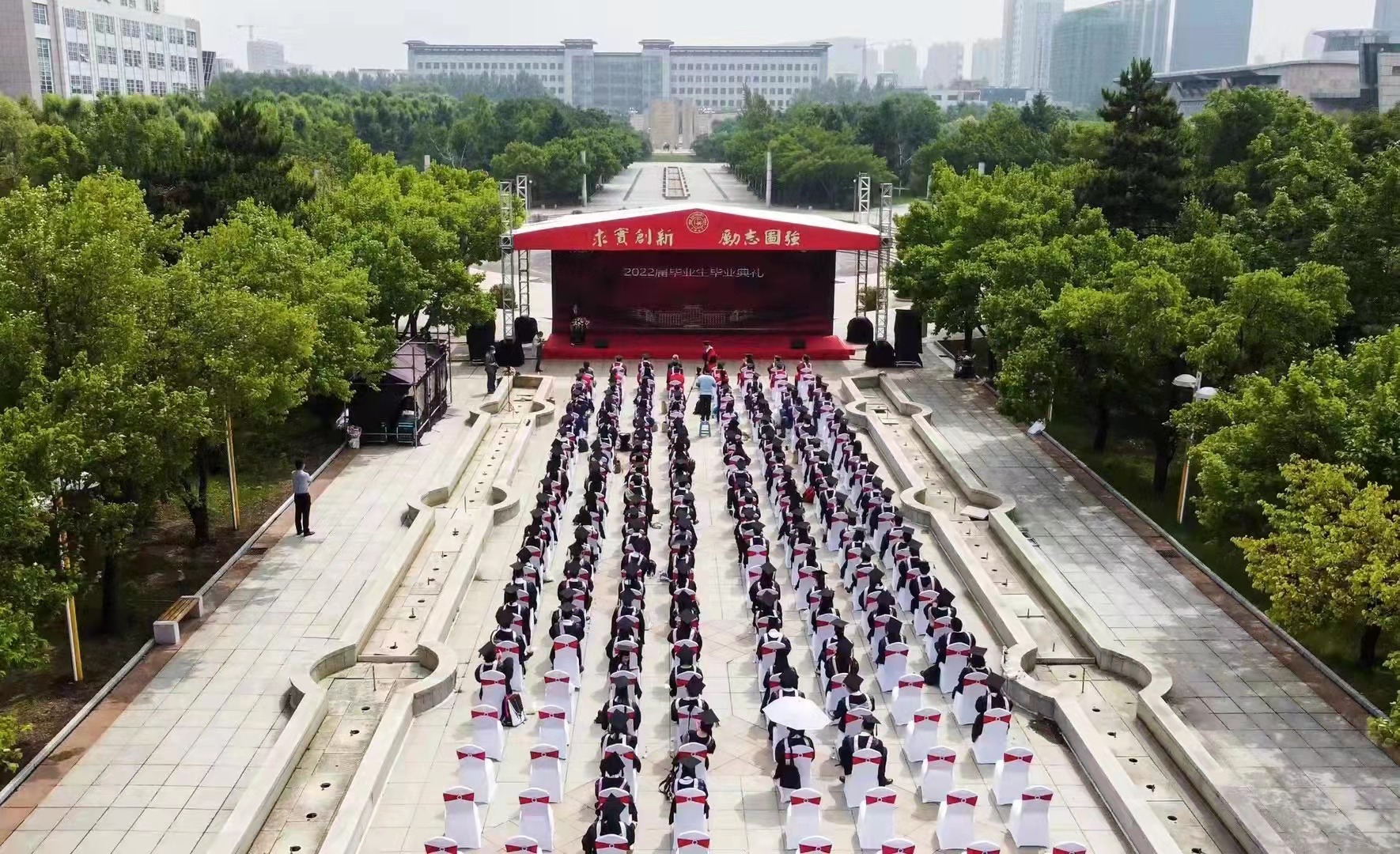 五月花广场举行2022年毕业典礼暨学位授予仪式,典礼由学院党委书记康永刚主持。典礼全程在网络实况直播,线上线下气氛热烈,动情温馨。