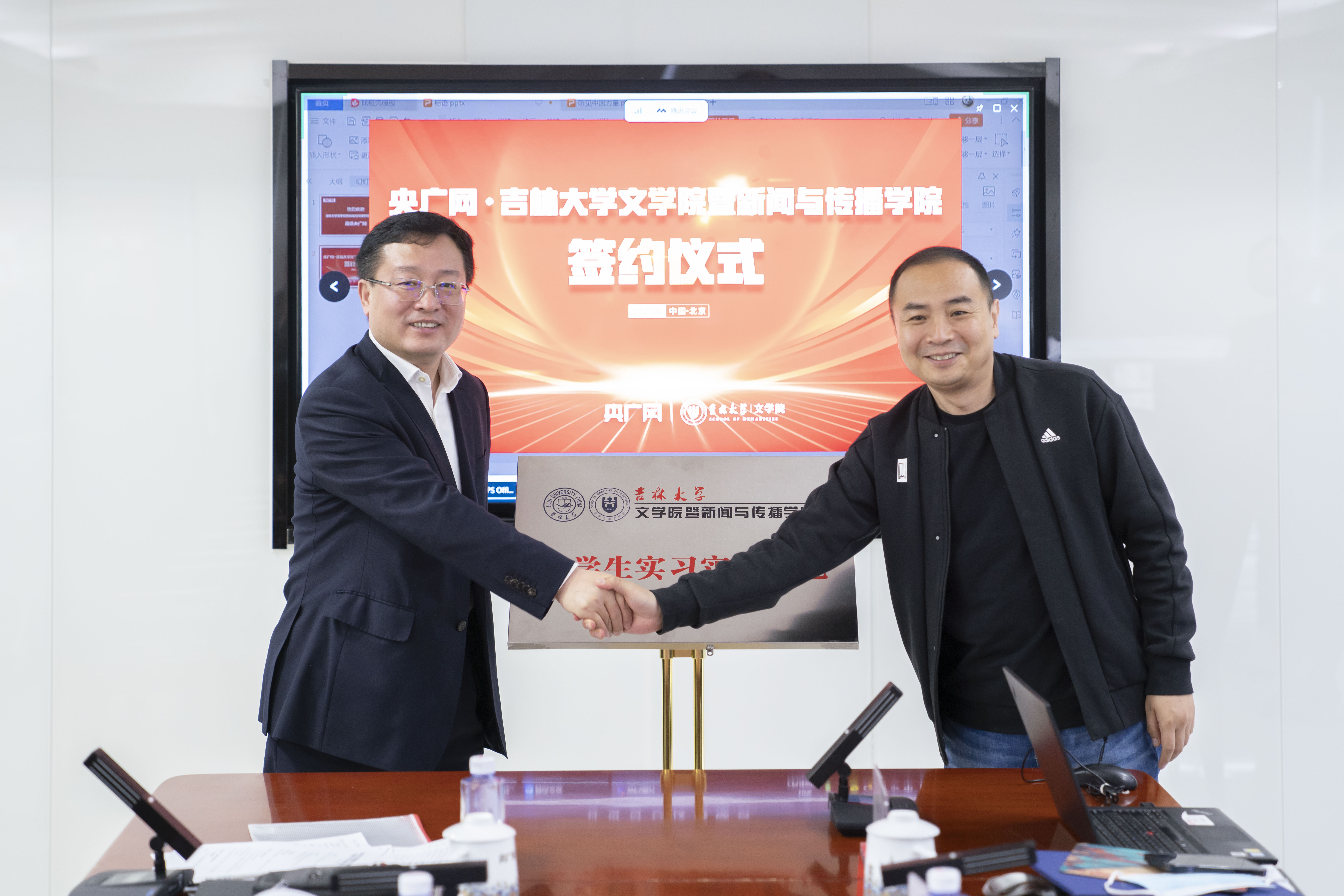 暨新闻与传播学院底蕴深厚,多年来培养出了许多优秀人才。于锋总经理在欢迎致辞中提到,希望借助学院相关学科的优势及研究成果,提升央广网的新闻业务及经营水平。同时表示,央广网及其33家地方分网遍布全国各地,有很大的承载空间,欢迎吉大教师来央广网交流,也欢迎吉大学子来央广网实习、就业。期待双方不断加深了解,以“实习就业基地”共建为契机,拓展合作空间,提升合作质量,对社会、对国家发展产生积极影响。