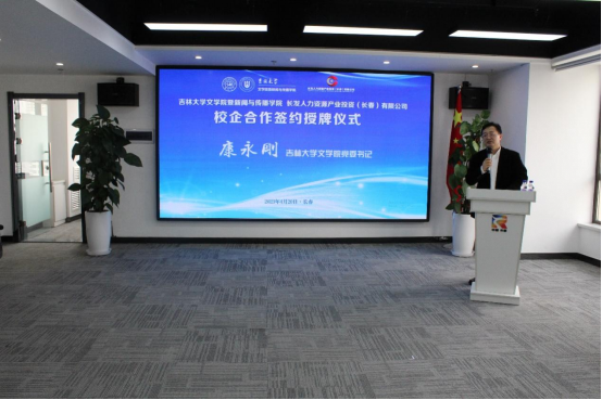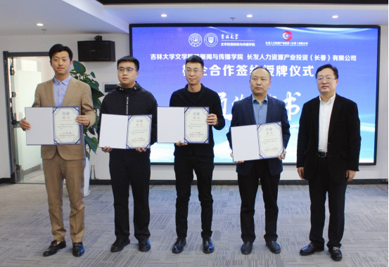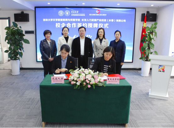 暨新闻与传播学院与长发人力资源产业投资(长春)有限公司校企合作签约授牌仪式在中国长春人力资源服务产业园隆重举行。长发人力资源公司执行董事长何凌、园区企业代表、黄色韩漫