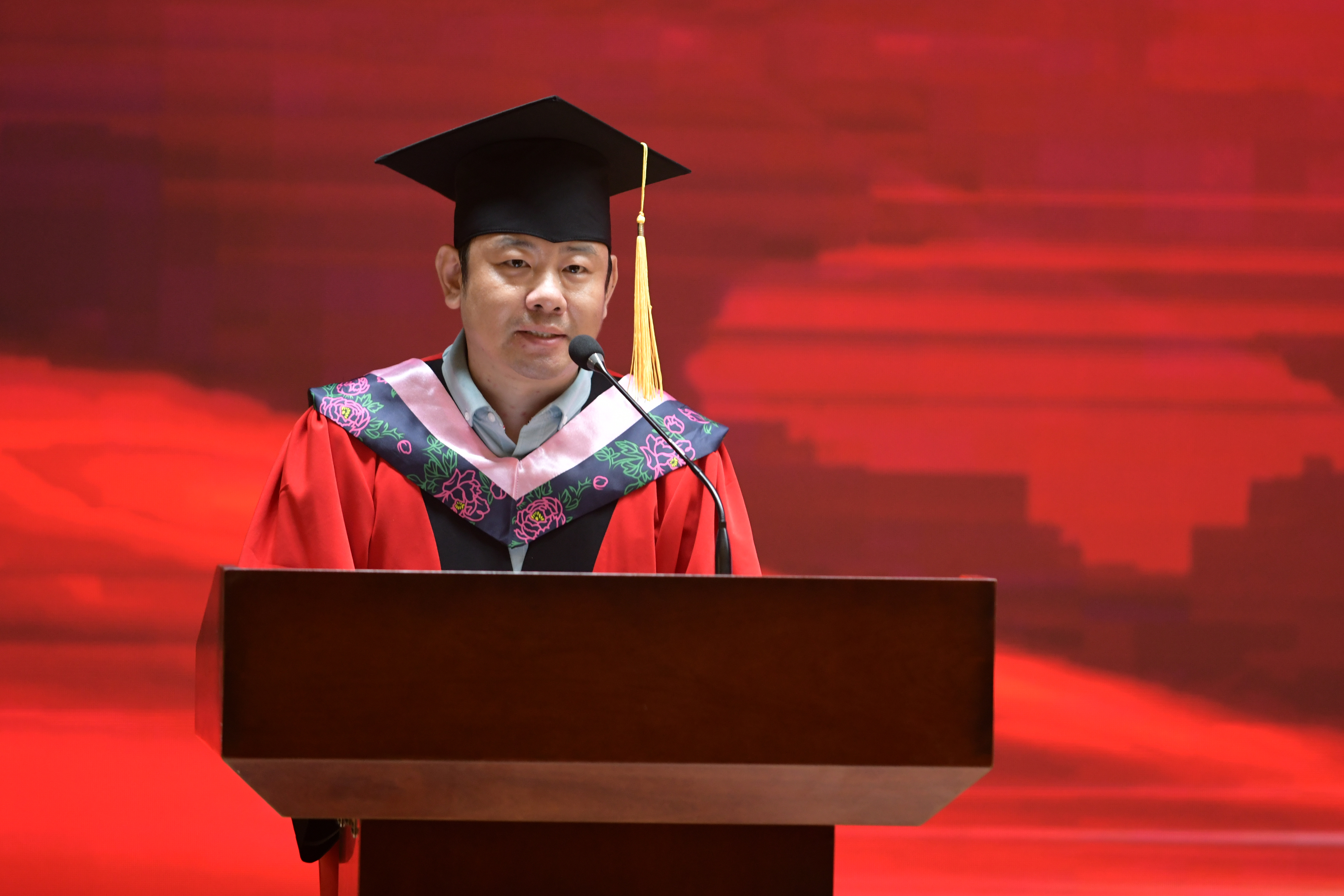 随后,院长张丛皞教授致辞,张院长表达了对全体毕业生的衷心祝贺与诚挚祝愿,并向同学们提出了三点希望:一是希望同学们要始终热爱生活,真正的生活应当是被赋予了高度的精神力量、充满了生命活力的生活;二是希望同学们要始终保持独立思考的习惯,在物质上可以不丰盈,但绝不能成为精神上的穷人;三是希望同学们要始终坚持在实践中不断的提升自我,塑造本领,成长为堪当民族复兴大任的时代新人!典礼现场久久回响起热烈掌声。