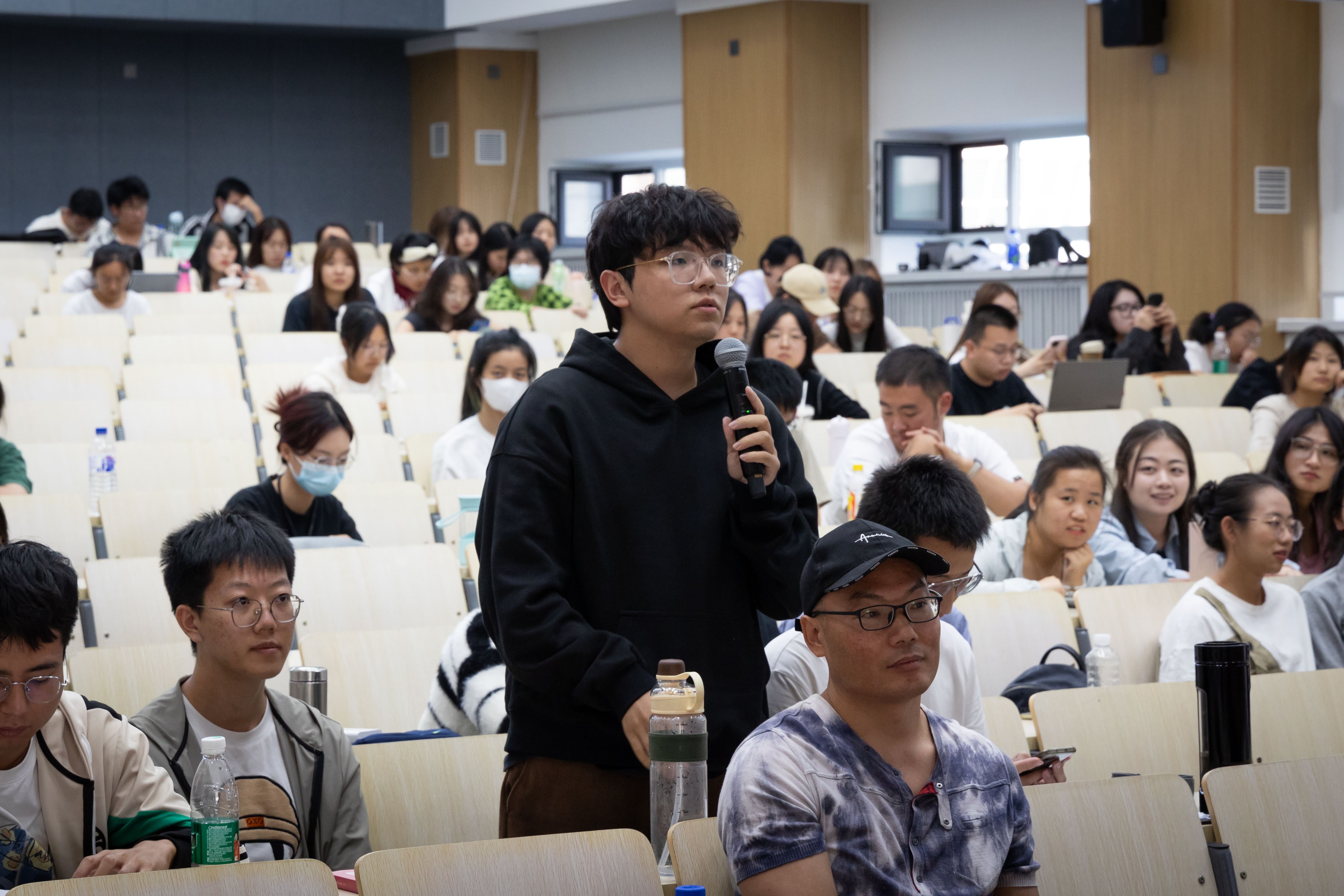 在交流互动环节,姜宇辉教授详细地解答了在场同学的问题。最后,姜宇辉教授表示,在如今移动端信息攻占人类生活的人工智能时代,他也在努力寻找“照亮存在”的具身性希望。