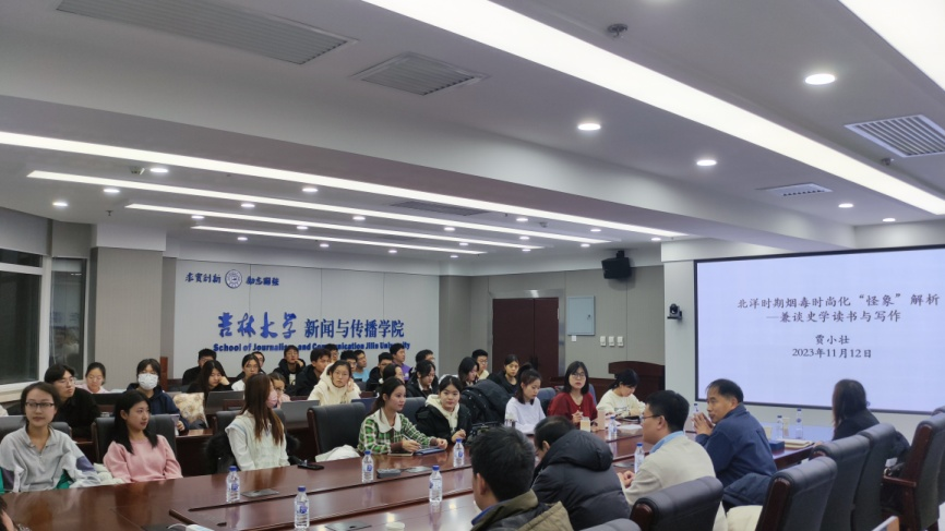 励新优秀青年教师培养计划入选者、中国史系贾小壮副教授作了题为“北洋时期烟毒时尚化‘怪象’解析——兼谈史学读书与写作”的学术报告。报告中,贾小壮老师就北洋时期烟毒时尚化诸“怪象”进行了深入解析,并结合自己的研究成果与参会师生分享了开展科研写作的经验心得。他将学术论文的撰写分为选题、史料搜集与提纲设定、论证、修改四大步骤,选题可选择新视角、新史料或新方法,同时应充分重视史料,史料也是提纲设定的重要依据,切忌伪造;在论证的过程中,可以从历史现象切入,深入挖掘其背后动因,最后贾小壮老师强调,论文修改是一个整体审视的过程,也是一个反复琢磨的过程,要沉下心来,将历史研究做细、做实。与会老师分别结合自己的研究方向对报告进行了深入评议,也对学生现场提出的问题进行了细致解答。