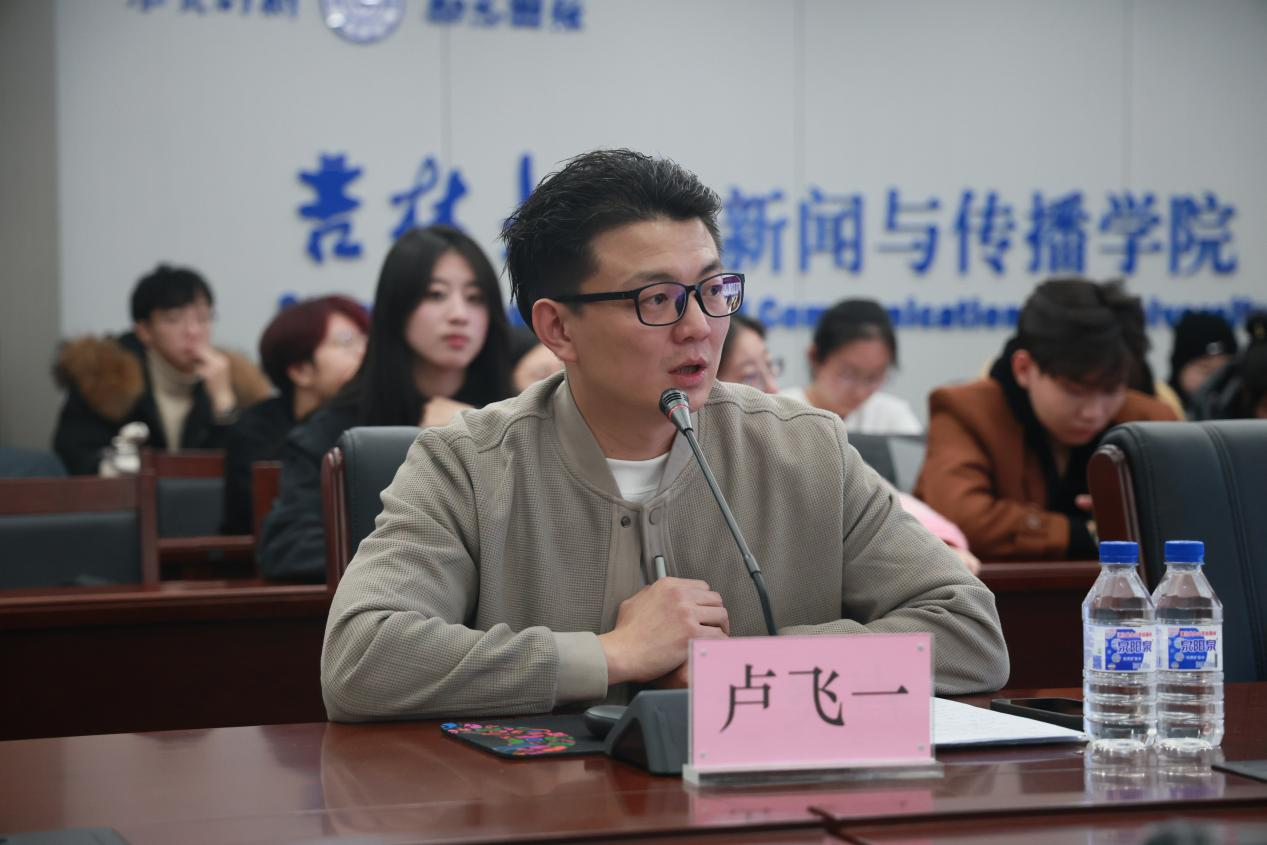 在随后的交流提问环节,卢飞一通过分享自身节目制作的实操经验以及对于该领域未来发展的深度思考,就同学们所提出的问题一一作出详尽的回答,展示出其对于新媒体环境下央视品牌节目的认识和探索的系统性和前瞻性。整个讲座内容层层递进,案例生动鲜明,学术探讨氛围浓厚,展现了学院师生营造的良好的学术氛围。