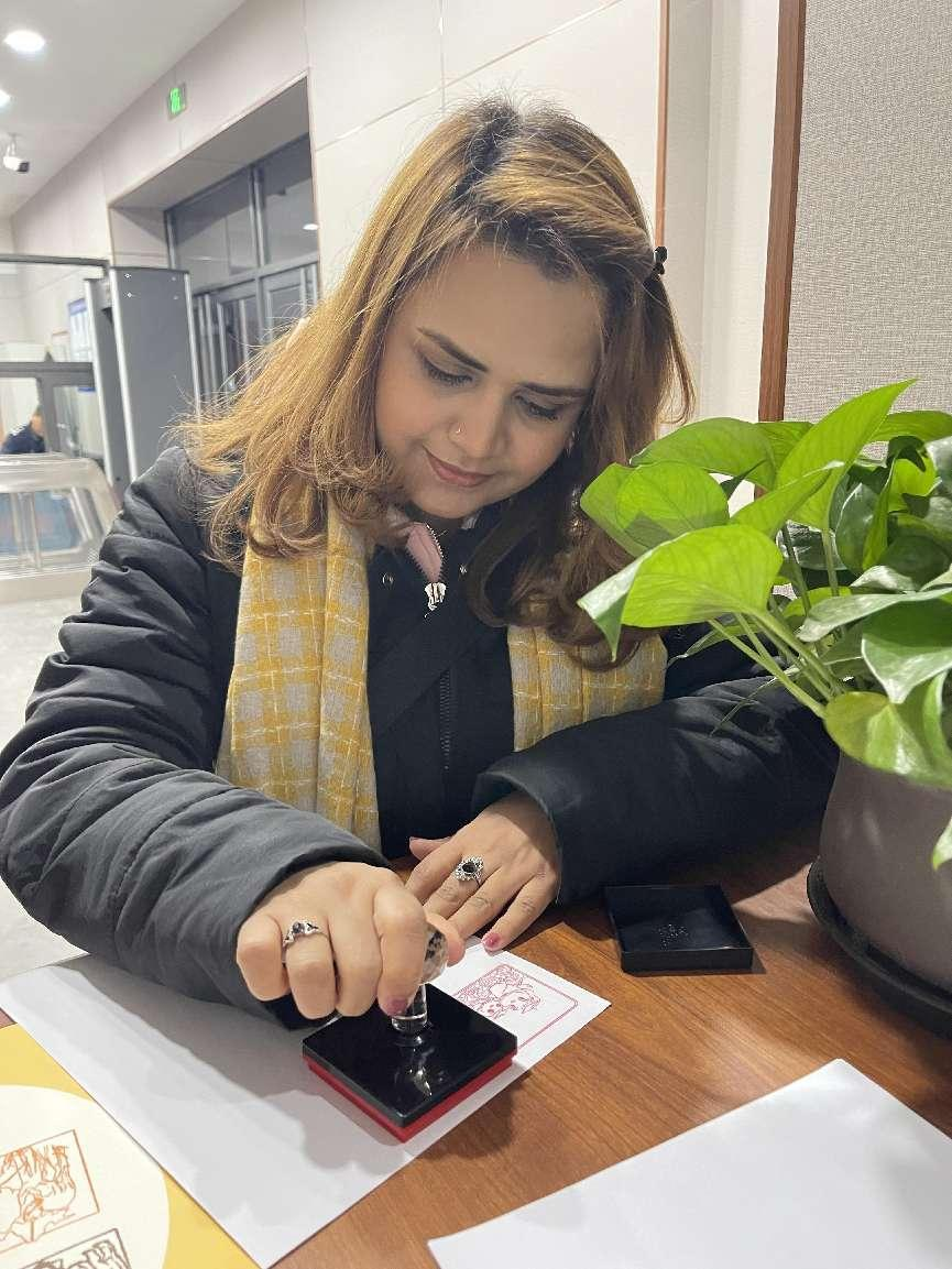 留学生们体验博物馆文创印章打卡活动