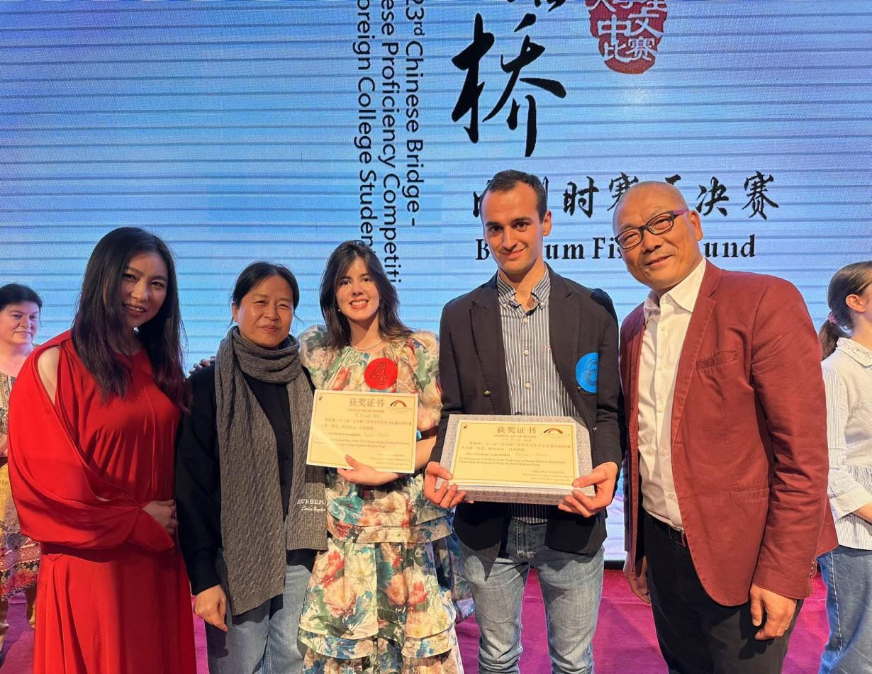 教师李莉莉经由中国驻比利时使馆教育处推荐担任大赛主持人,由于此前一段时间李老师的悉心指导,加之主持人也正是自己熟悉的老师,大大减轻了何杰明的紧张情绪,顺利拿下了比利时赛区总冠军。
