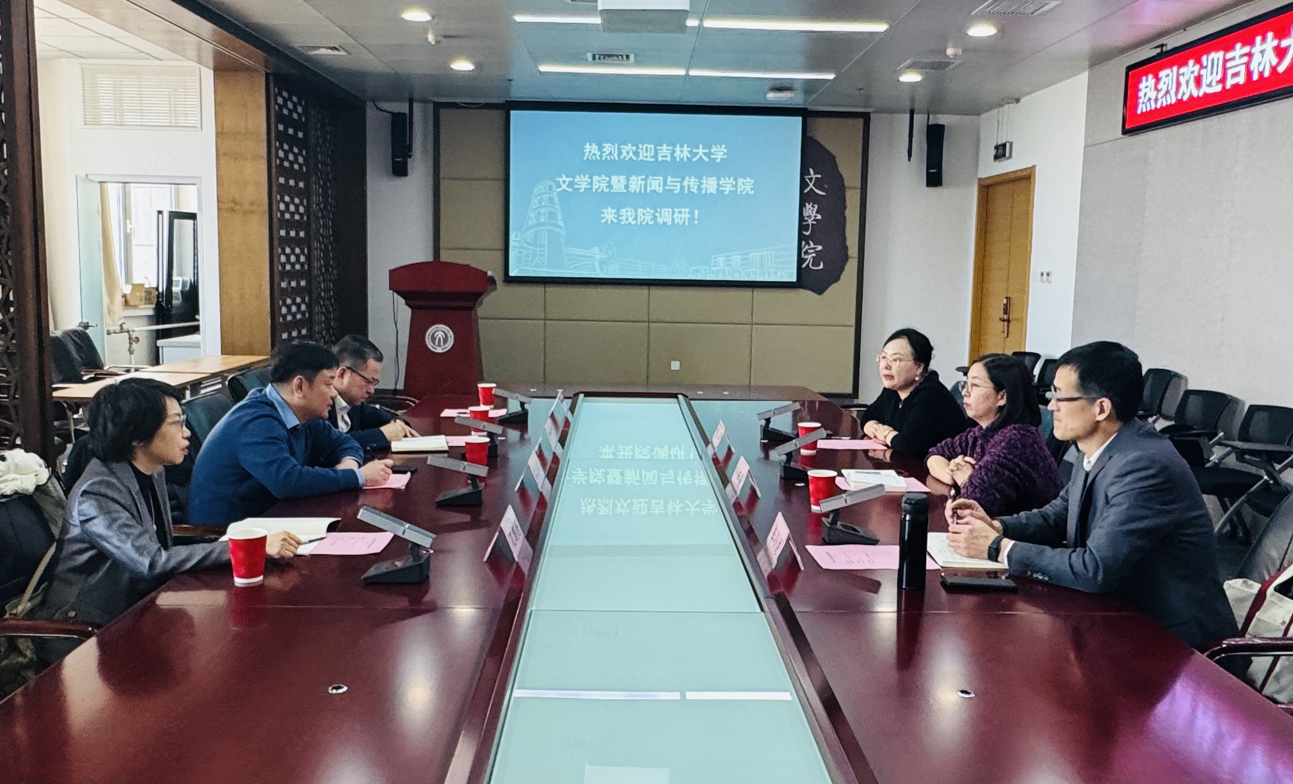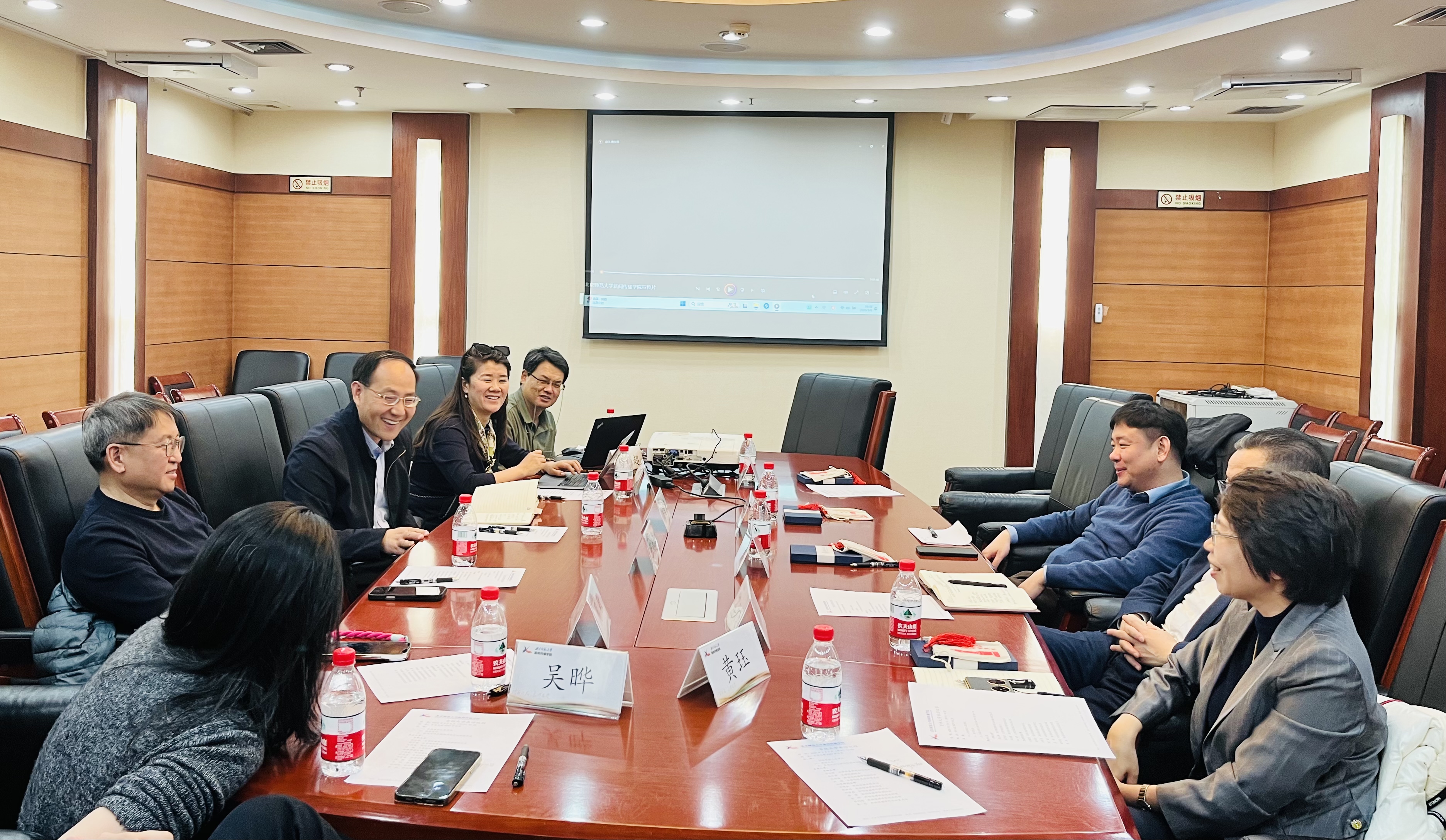 ,副院长卜师霞、张莉、李小龙出席会议,双方就创意写作学位点建设、学科目录与学科布局调整,研究生学科命题等问题展开深入交流。在北京师范大学新闻传播学院,学院书记方增泉,院长张洪忠,副书记祁雪晶,副院长周敏,院长助理吴晔、修利超,院办主任黄珏出席会议,双方围绕科研国际化、计算传播学学科建设和马新观课程体系建设等议题进行了深入的探讨,随后学院一行参观了北京师范大学新闻传播学院新文科实验室。