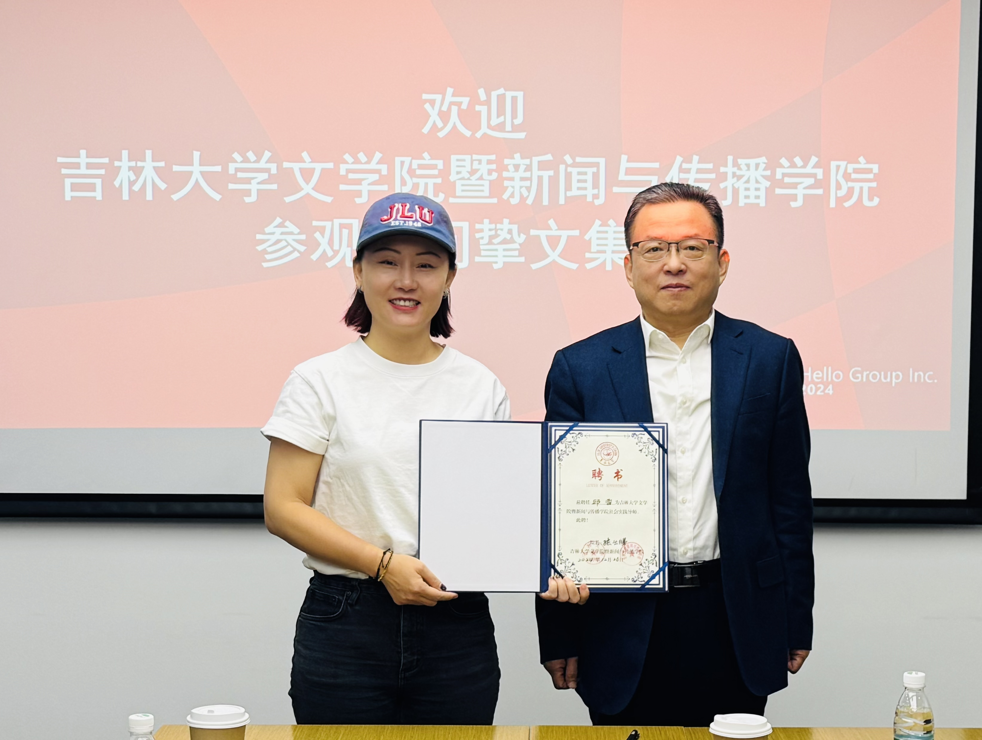 暨新闻与传播学院实习实践基地”牌匾;李子君副院长向挚文集团直播运营高级总监邱雪、人力总监刘博、招聘总监陈浩3人授予“社会实践导师”聘书。未来,社会实践导师们将积极参与学生职业能力培养,助力人才成长。