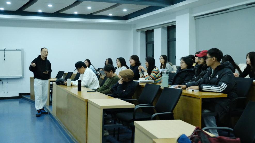 暨新闻与传播学院副教授赵贺老师主讲,鞠惠冰教授担任主持,学院师生到场聆听。