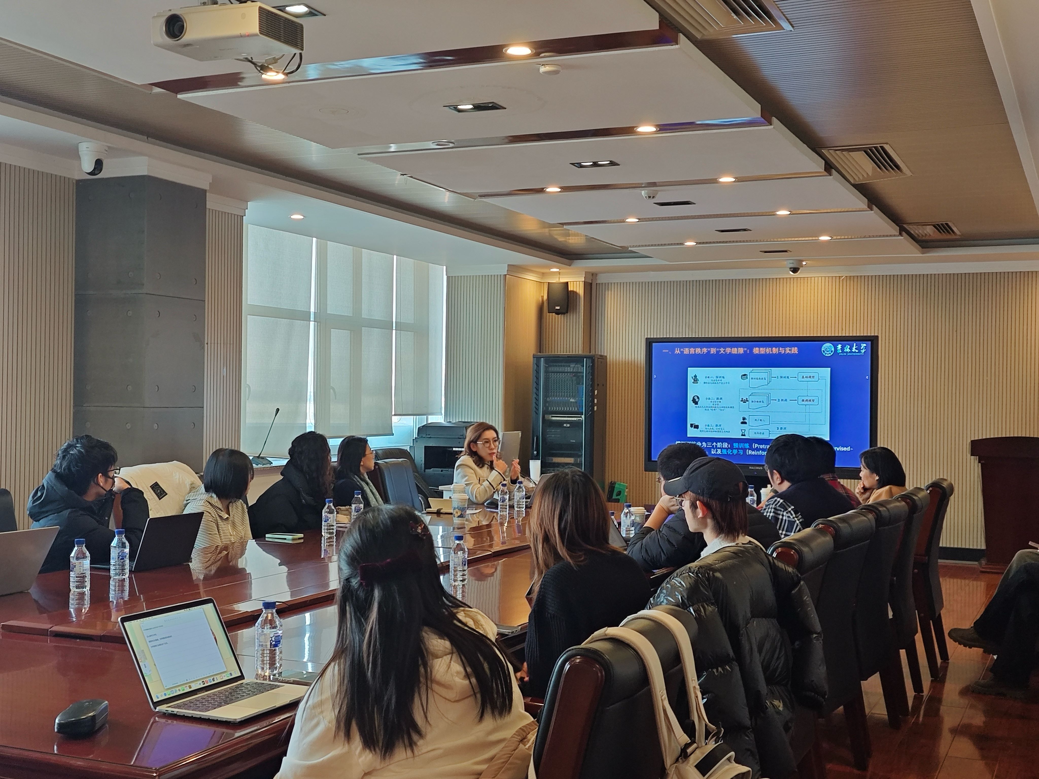 吉林⼤学“励新优秀⻘年教师”培养计划⼊选者,国际语言学院王欣睿副教授作了题为“可预测的语言,不可预测的文学?——AI结构的悖论”的学术报告。王欣睿副教授长期从事国际中文教育与现当代文学交叉研究。本次报告聚焦 AI 技术对文学创作的深层影响,展现了跨学科研究特色。