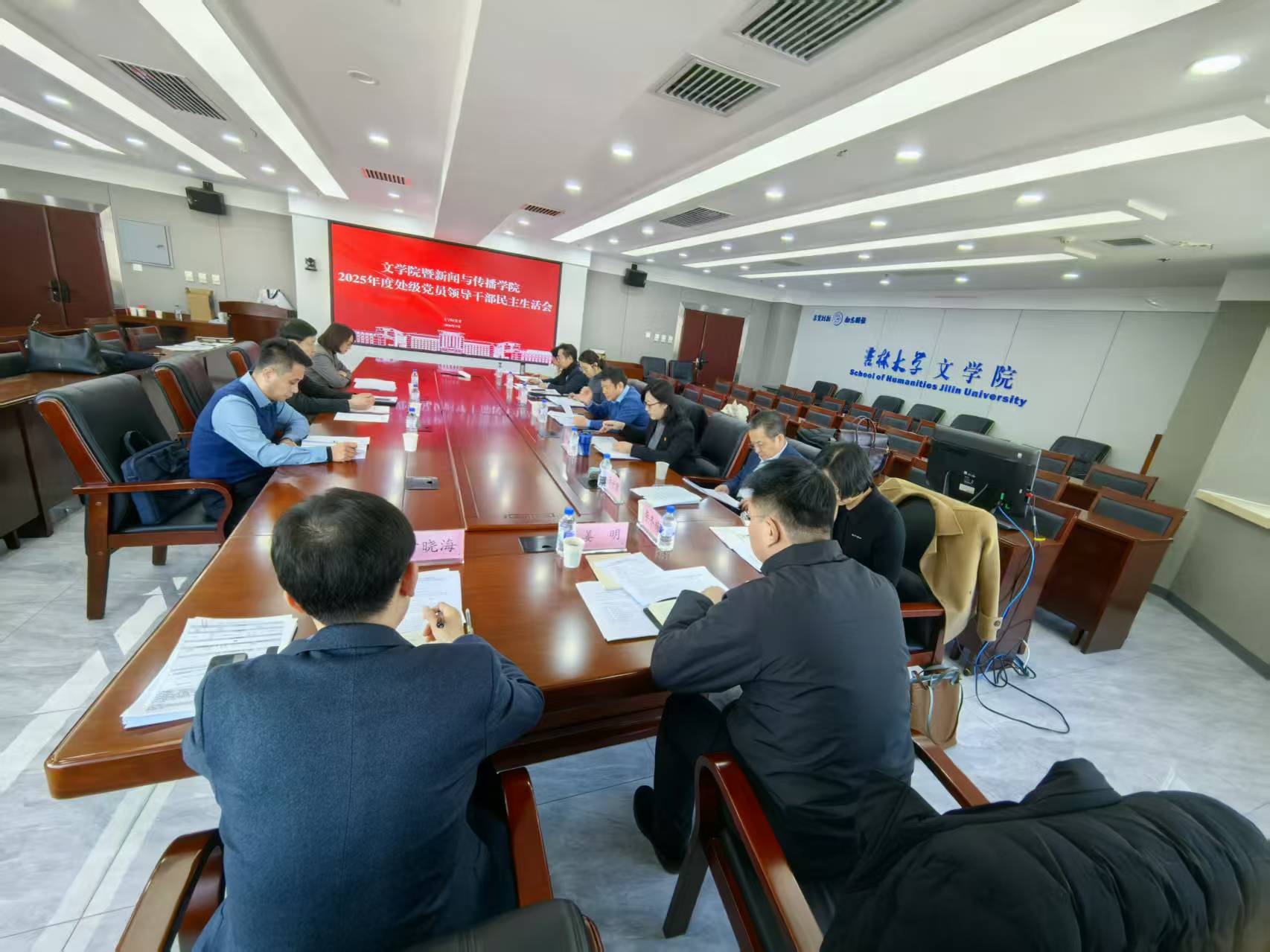 暨新闻与传播学院在东荣大厦十楼会议室召开了2025年度处级党员领导干部民主生活会。学校第八督导组组长李滢宇、副组长吕清华、组员王洋到会指导。学院全体处级党员领导干部参会,院长张丛皞主持会议。