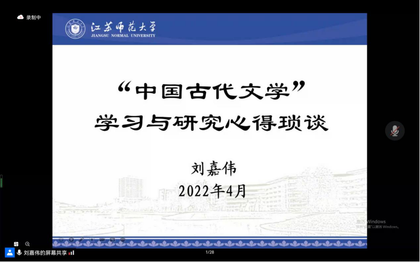 杰出校友刘嘉伟老师,作为主讲人与200余位来自不同年级、不同专业乃至不同高校的同学们分享了自己在中国古代文学的学习与研究当中的一些心得体会。