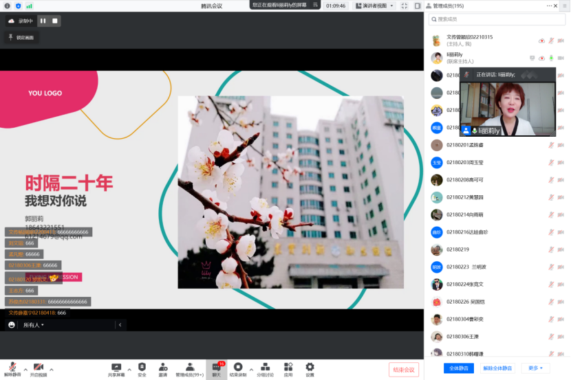 暨新闻与传播学院2000级播音与主持艺术专业的优秀校友郭丽莉老师,其作为主讲人分享了《时隔二十年,我想对你说》的就业体会,与会的上百位同学分别来自四个年级的历史、中文、播音主持、广播电视编导等多个专业。