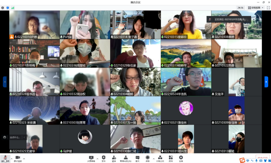 播音与主持艺术专业2021级团支部于5月11日举办五月团日活动,全体同学积极参加。此次活动主题为入团精神学习和习近平总书记关于中国人民大学的发言,旨在加深同学们对团组织及其精神的认识,会议由团支书曹子墨主持。会议分为两个部分,一是线上重温入团誓词。“我志愿加入中国共产主义青年团”的红底金字重新展现在眼前,同学们纷纷打开摄像头,看着镜头重新念起入团誓词。完成念诵后,同学们开始交流起入团数年以来的经验,表达了对团组织精神新的领悟。第二部分是学习习近平总书记的讲话和对于年轻人的期望,此环节,同学们集中学习了习近平总书记的讲话,他的讲话集中表达了对当今青年的殷切希望,鼓励大家在未来学习生活中保持上进心。