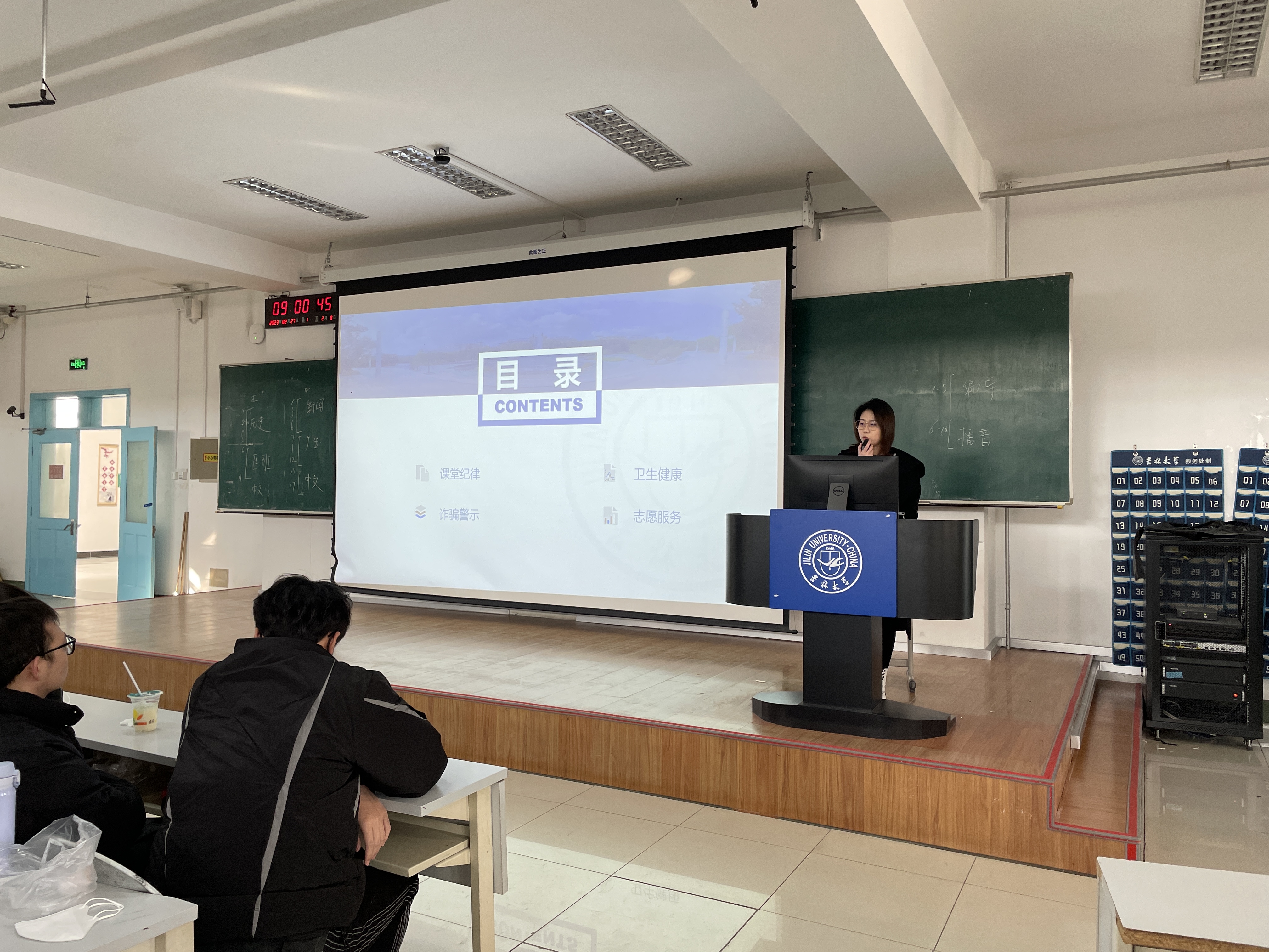 暨新闻与传播学院对课堂纪律的要求,明确了违反纪律的严重后果,提醒同学们劳逸结合、努力学习。第二,重视卫生健康。春季是传染性疾病的多发季节,袁老师提醒同学们注意关注自己的健康状况,早发现,早治疗,保持寝室环境的整洁,不使用违规电器,勤通风。第三,严防电信诈骗。袁老师提示大家注意自己的人身和财产安全,不轻易透露自己及家人的个人信息,收到有异议的信息时要保持警惕,及时核实。第四,介绍志愿时长组成。袁老师向大家介绍了志愿服务时长的计算考评办法,提醒大家积极参与有意义、有质量的志愿服务活动,获取志愿服务时长。