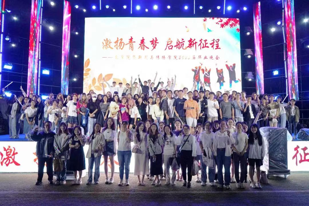暨新闻与传播学院2023届毕业晚会落下帷幕,各位演职人员以及毕业年级辅导员于航老师合唱歌曲《再见》,为本次毕业晚会画上句号。
