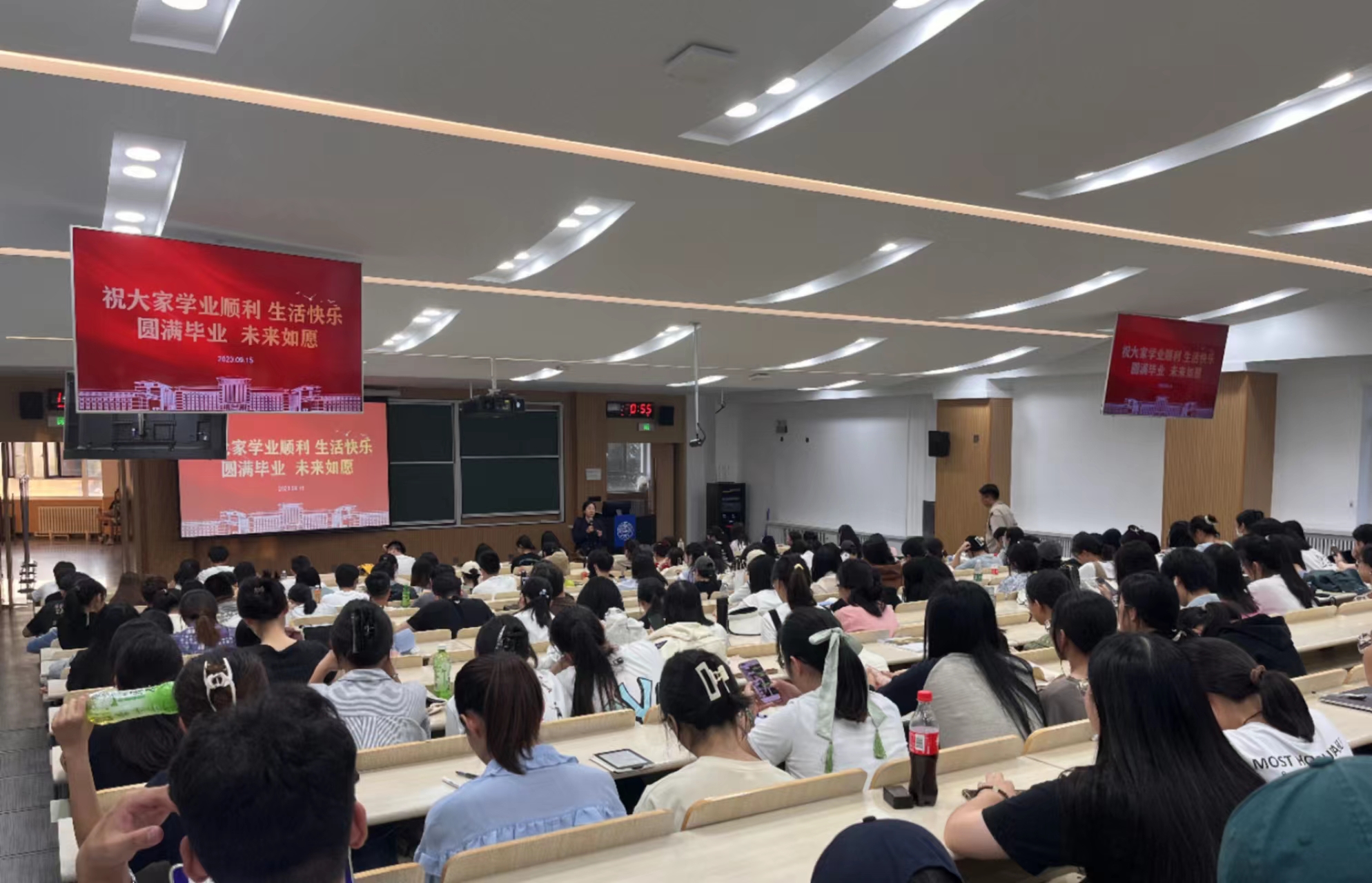 正值国家网络安全宣传周,曲昭琦在会上领学了网络安全手册,讲述了数据泄露、电信诈骗、邪教渗透等案例,嘱咐同学们提高网络安全意识,警惕网络安全隐患。随后,针对同学们即将面临的就业问题,曲昭琦详细地讲解了毕业生网上签约的系统操作流程,叮嘱了签约注意事项和求职安全事宜。最后,话题回归毕业年级的日常管理,曲昭琦进一步强调了离返校报备、寝室卫生与安全、学业与考试、课外培养计划等事项的具体要求。