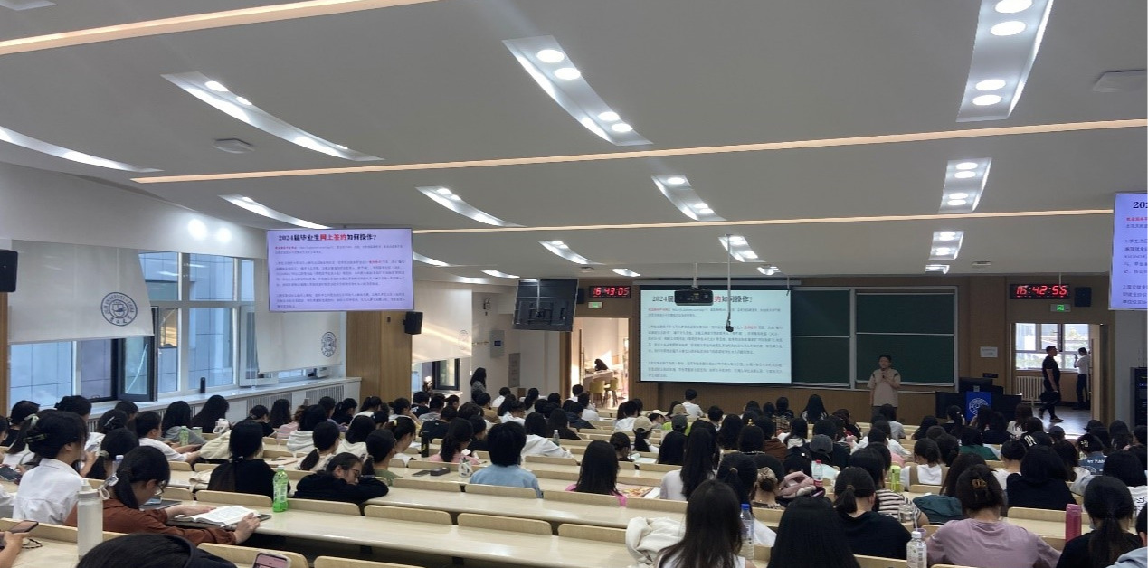 “咱们同学投递简历数量有多少了?”“去了几场秋招宣讲会了?”,杨一博老师在会上以轻松的提问了解了毕业年级本科生的求职意愿和就业择业状况,杨老师详细讲述了在就业选择、简历投递、笔试面试等方面需要注意的关键问题,帮助毕业生准确定位、合理预期,积极面向秋招市场。同时,杨老师还强调了目前同学们需要找准自己的方向、明晰自己的定位,多尝试、多实践、多总结,主动增强个人在求职市场中的核心竞争力。