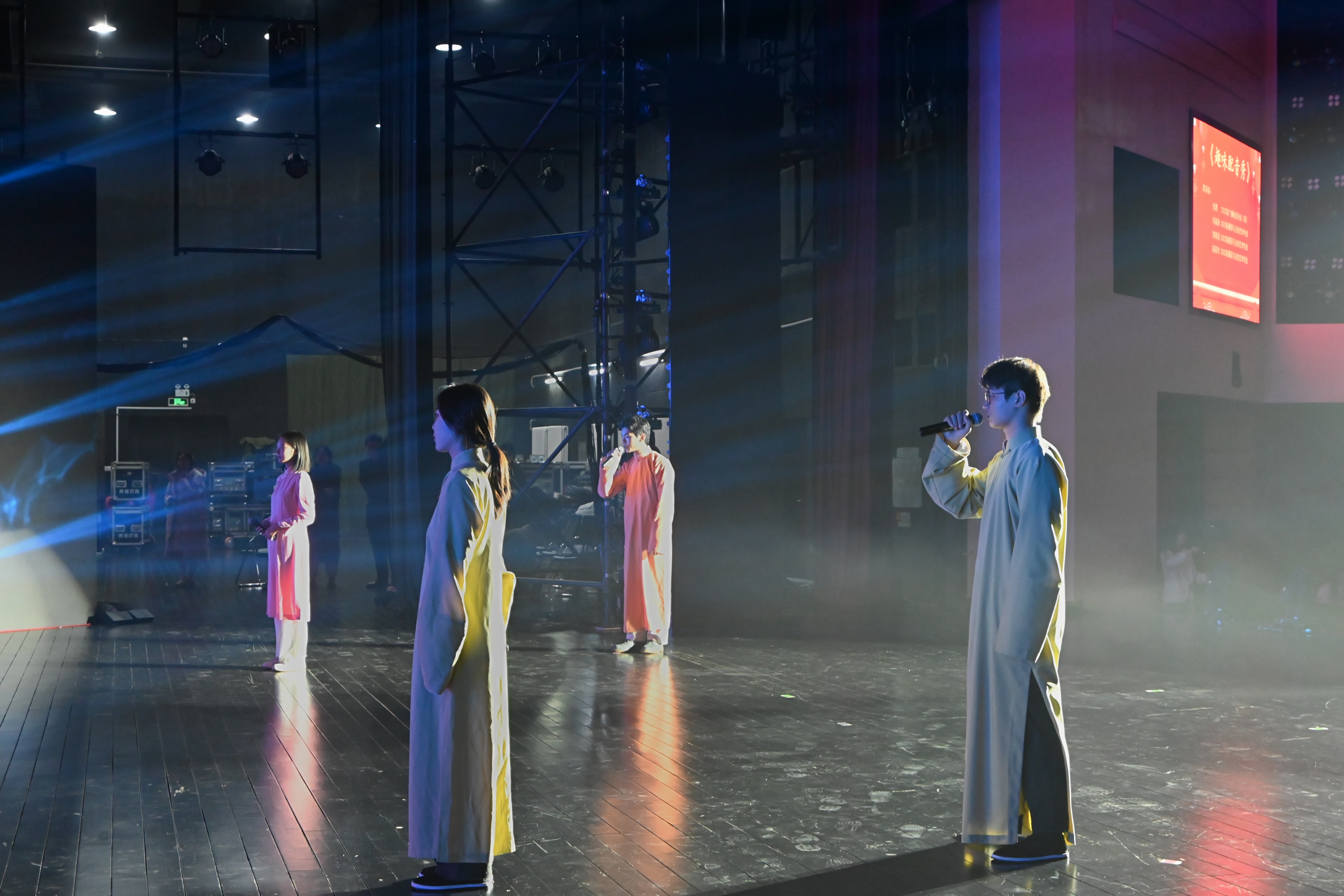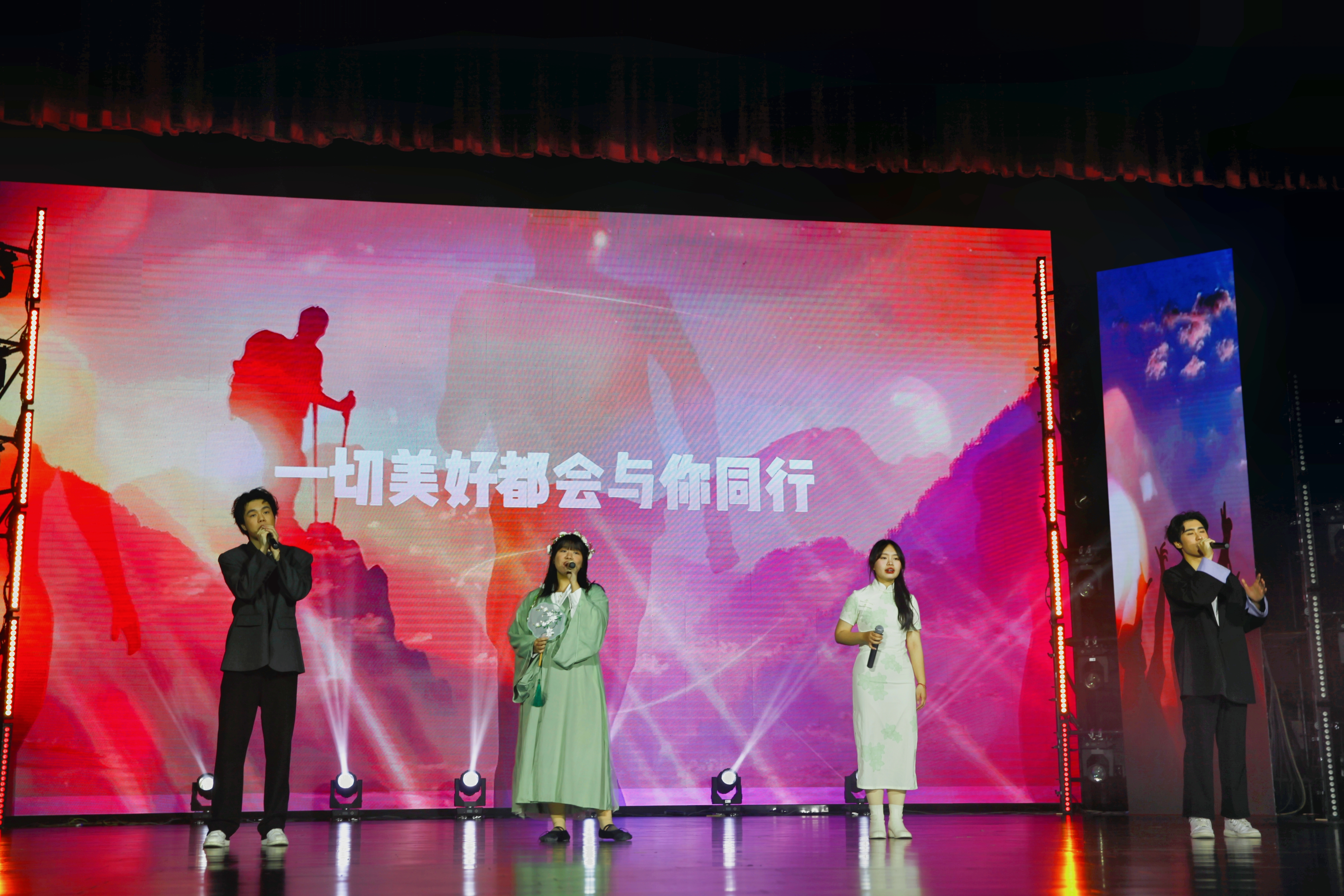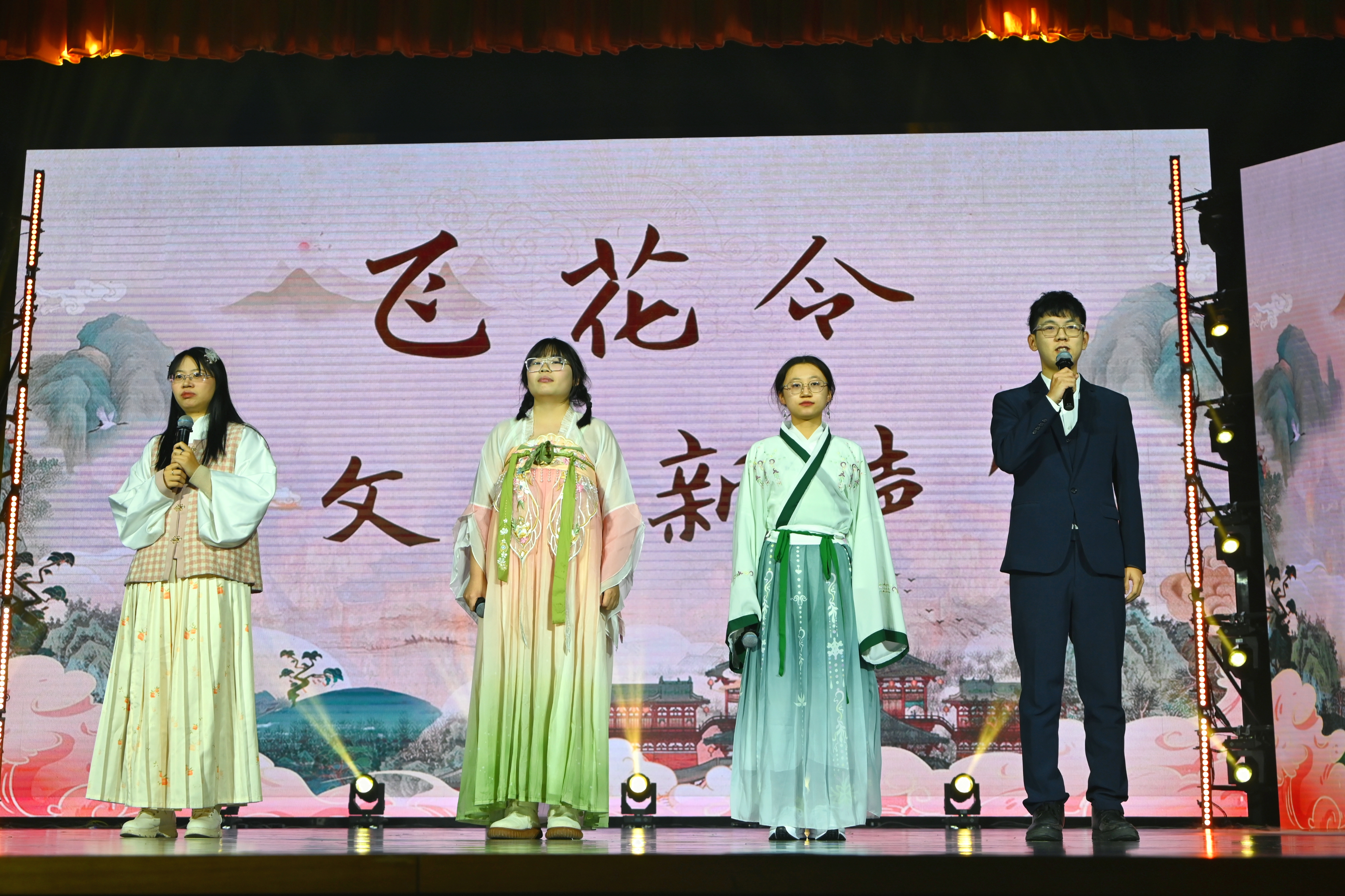 最后,伴随着振奋人心的校歌与现场师生热烈的掌声,晚会圆满落幕。本场晚会从节目策划、舞台设计、视频拍摄到排演的一帧一幕,均由学院师生团队独力完成。这既是一场丰富的校园文化活动,更是一次专业实习实践的的闪亮舞台!未来,文传学子将更加踔厉奋进,继续传递属于我们的“文韵新声”!