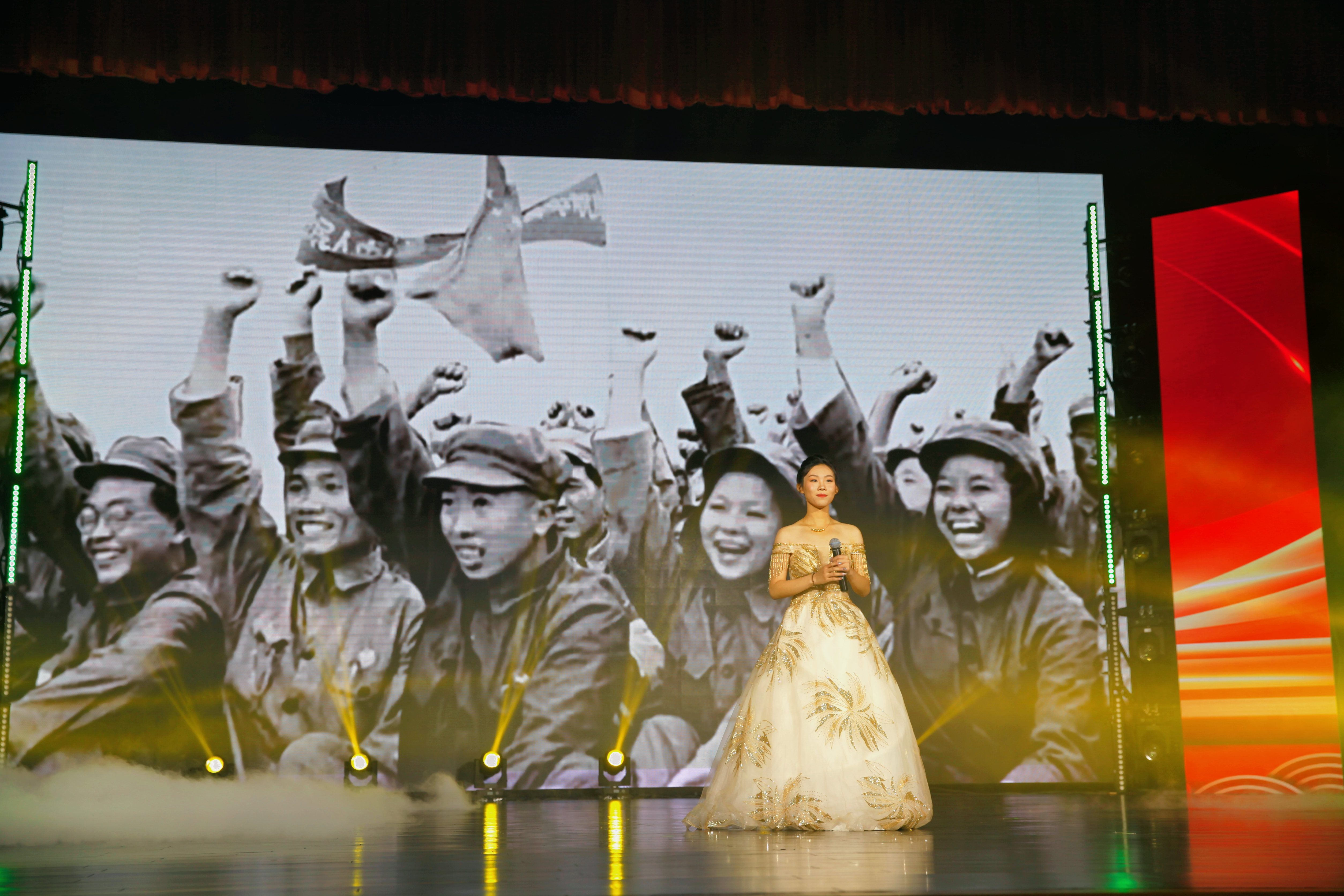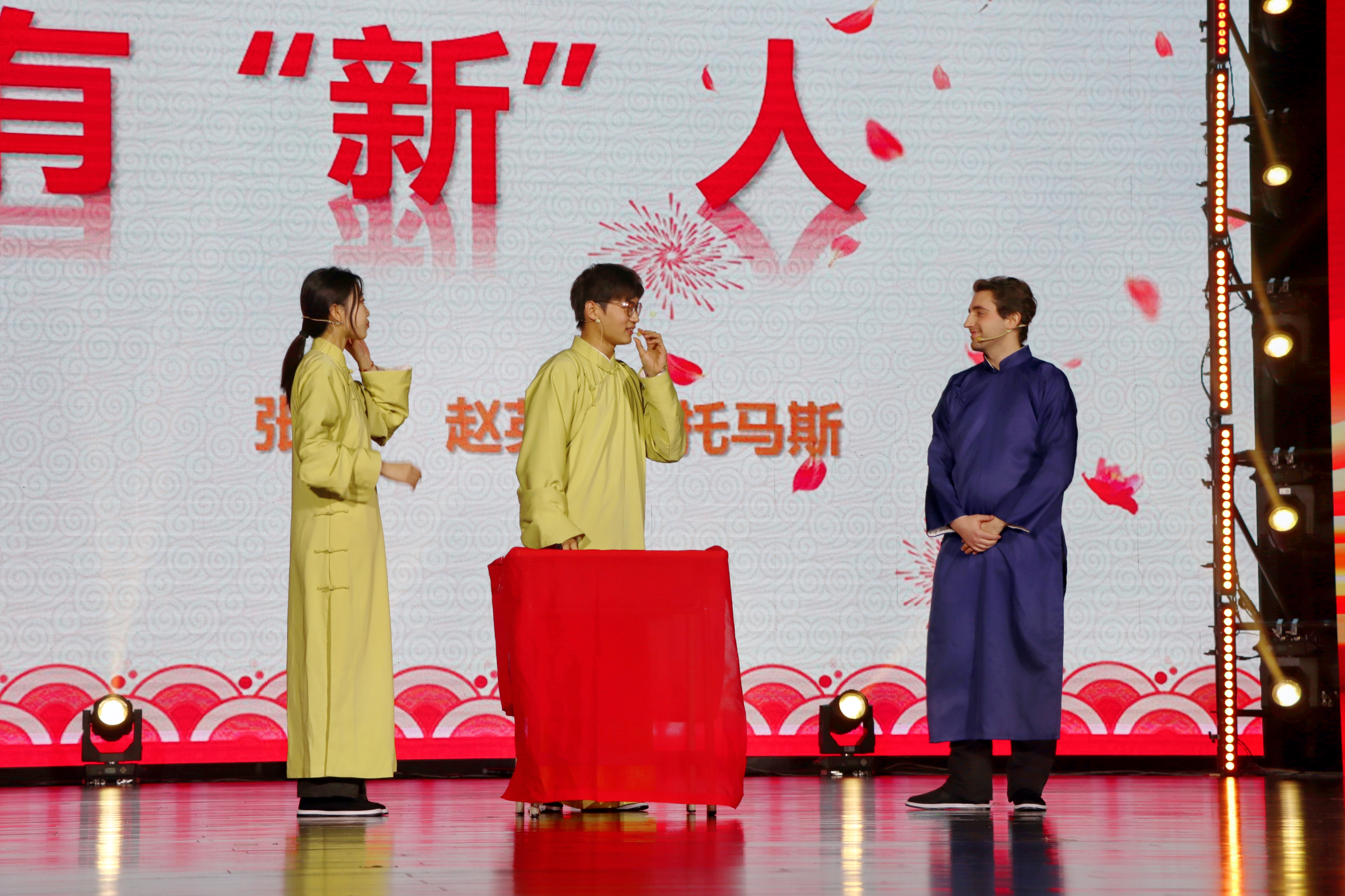 在第三篇章——承:文传之志中,《曳铃》舞蹈演员们的舞姿翩若惊鸿,婉若游龙;《趣味配音秀》将影视剧与学习生活结合,引起台下观众的深刻共鸣;歌曲《不忘初心》在回忆学院发展史、前辈先贤和优秀校友的事迹中进一步坚定文传师生的信念和意志;教师与新生代表们通过情景剧《响亮吧!新声!》的演绎,向观众展示了文传学子的蓬勃朝气。