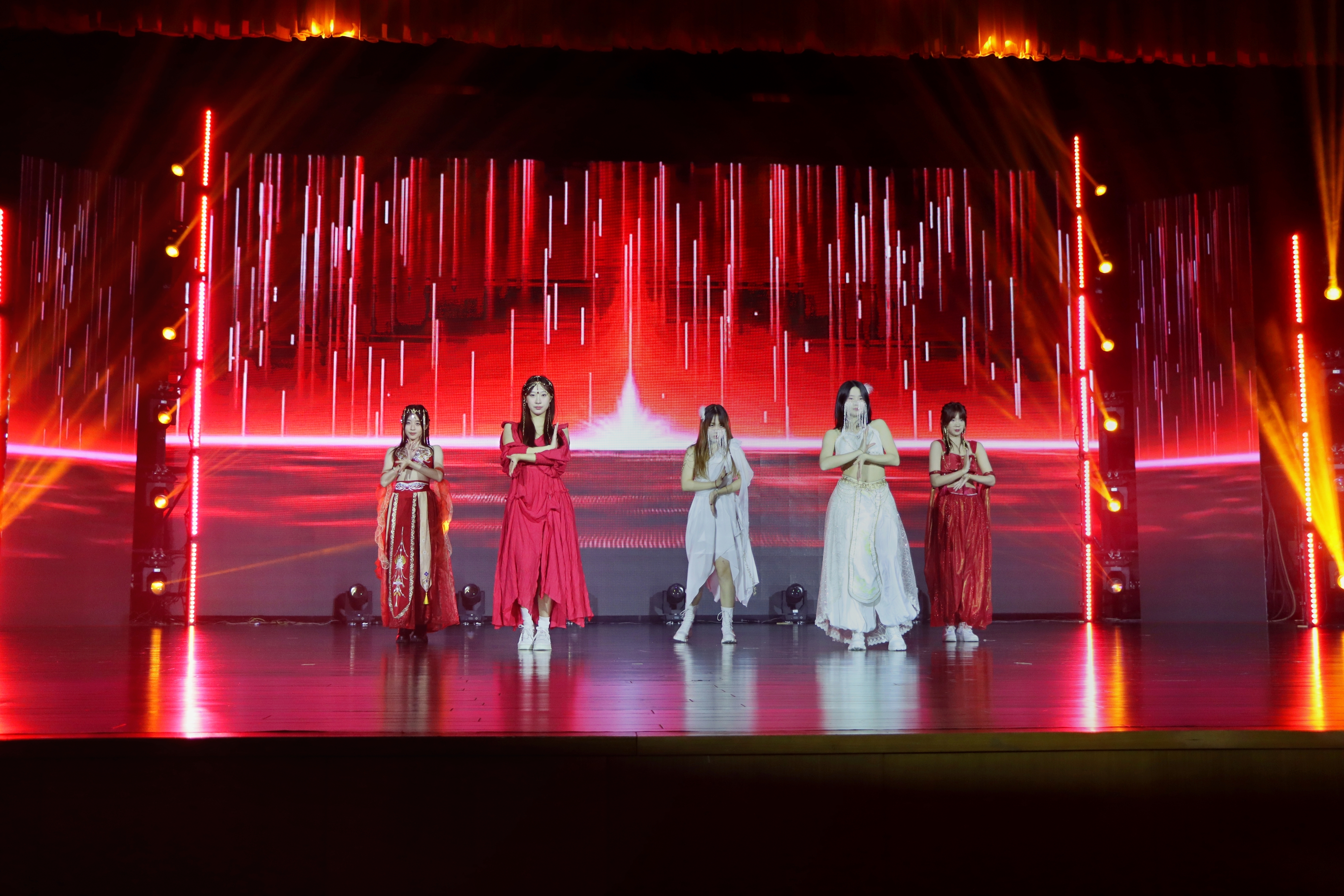 晚会在开场视频《最美镜头》中拉开帷幕。跟随镜头,观众重温了学院师生丰富多彩的在校日常生活,在邀请函的传递中,晚会精彩启幕。开场舞《火花》点燃全场,带领观众走进第一篇章——源:文传之缘。古风歌曲《字正腔圆》荡气回肠,豪迈大气,为观众展现了中华文化的壮美诗篇;在演员生动形象的演绎中,小品《时间都去哪了》让观众切身体会到时间的流逝,并提醒同学们要珍惜时间,不负青春韶华;体现江南水乡温婉情怀的古典舞《红马》,让观众随着舞蹈的韵律,感受杜甫笔下“舞霸龙楼人去尽,千人空限其生喧”美人之舞的景象。