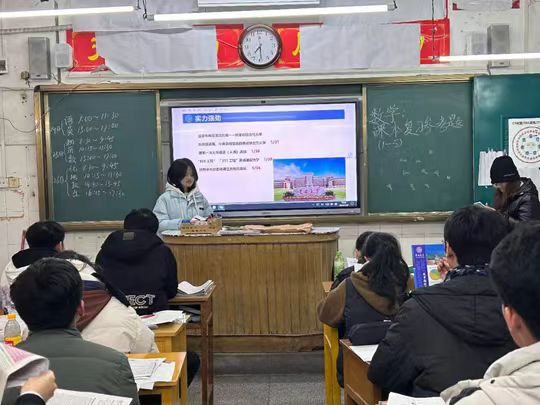 的基础条件和校园生活。同学们热情配合,活动现场气氛轻松和谐。在互动提问环节,同学们积极踊跃参与,就多方面问题进行咨询,宣讲队成员耐心解惑。在介绍吉大的同时,队员还向同学们分享了自己备战高考的心得和学习方法,鼓励他们保持努力,去往心中理想的学校。