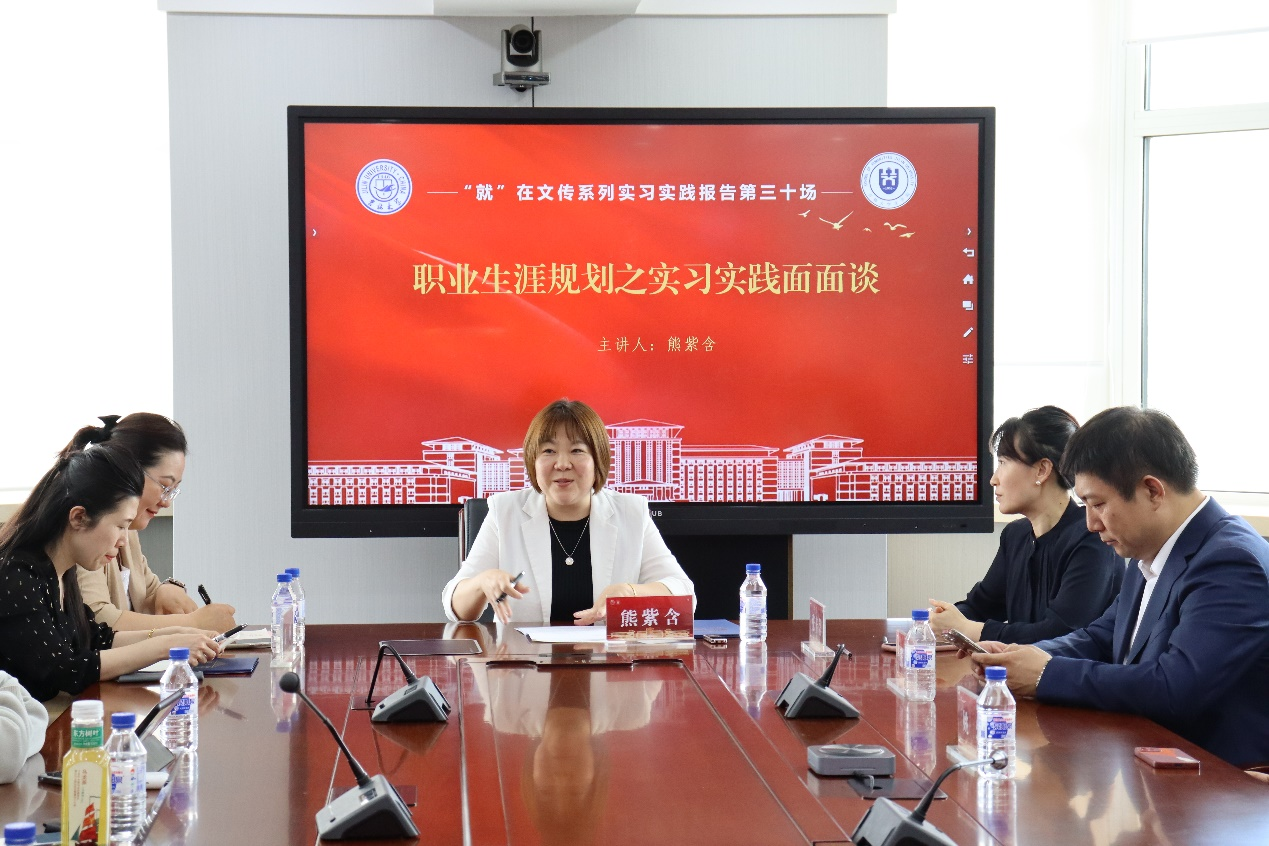 暨新闻与传播学院“就”在文传系列实习实践报告会第三十场《职业生涯规划之实习实践面面观》于东荣十楼会议室成功举办。此次活动邀请吉林省广播电视台教育广播女性节目组制作人熊紫含担任主讲嘉宾,由黄色韩漫