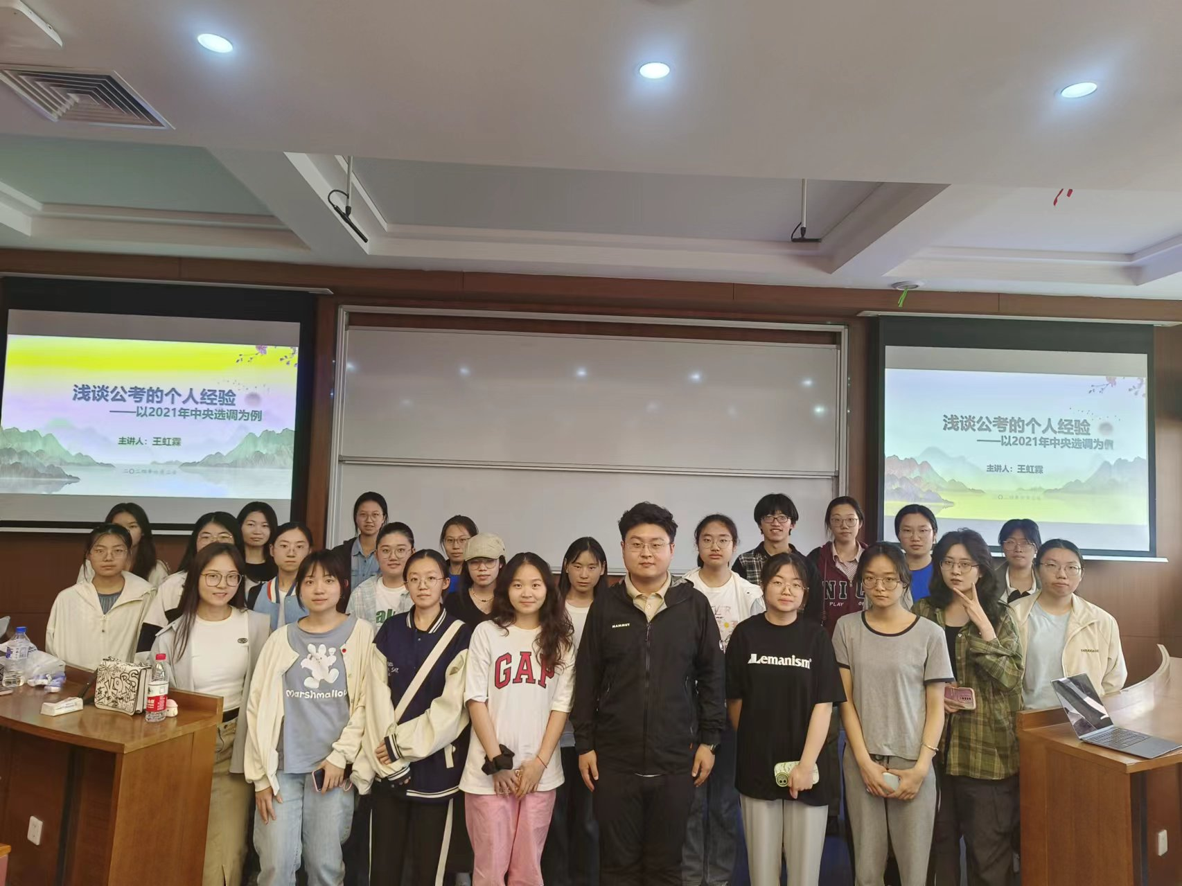 学生带来了关于考公选调考试的宝贵经验和心得体会。辅导员李芊满、杨佳欣参加会议。