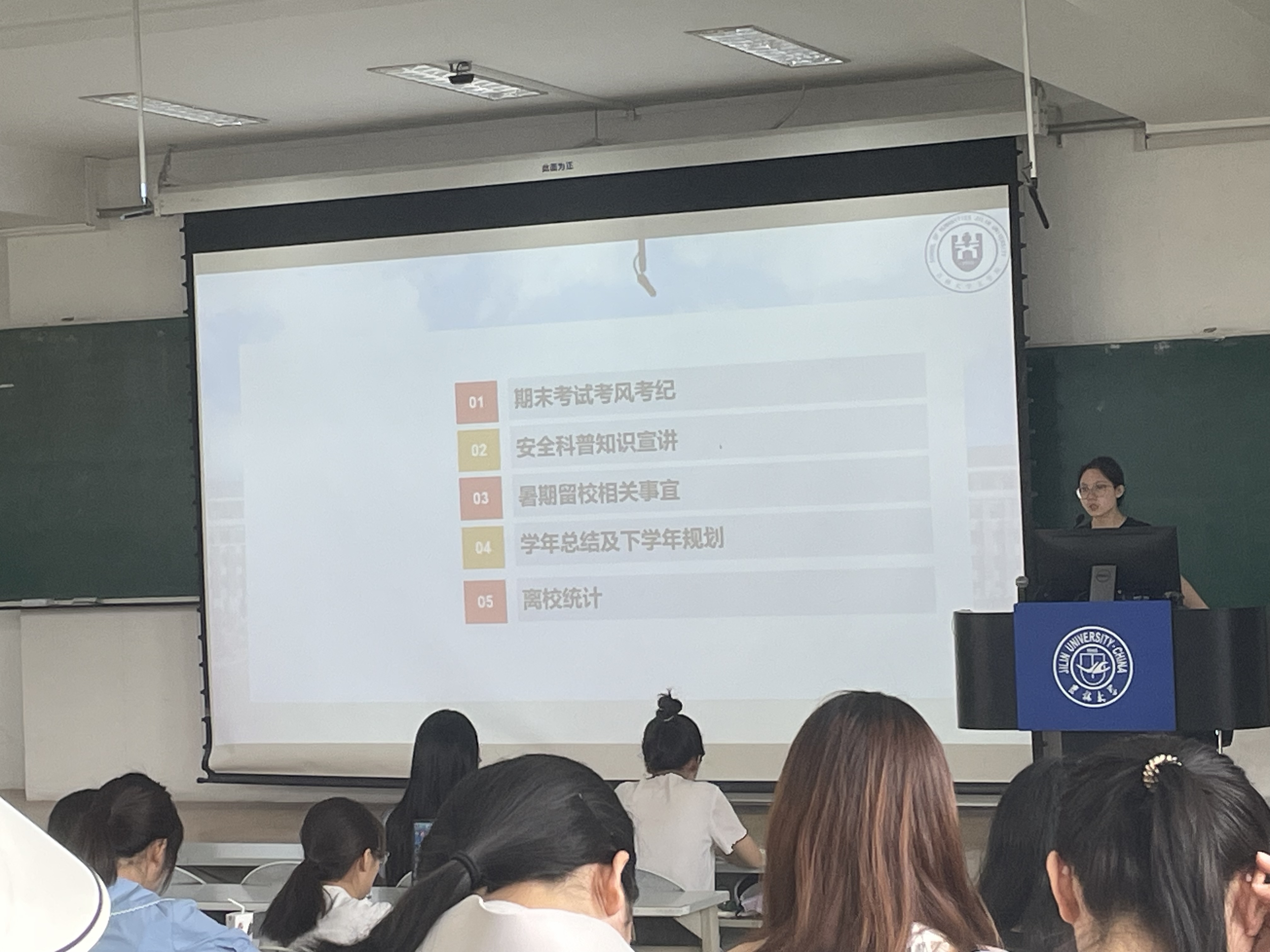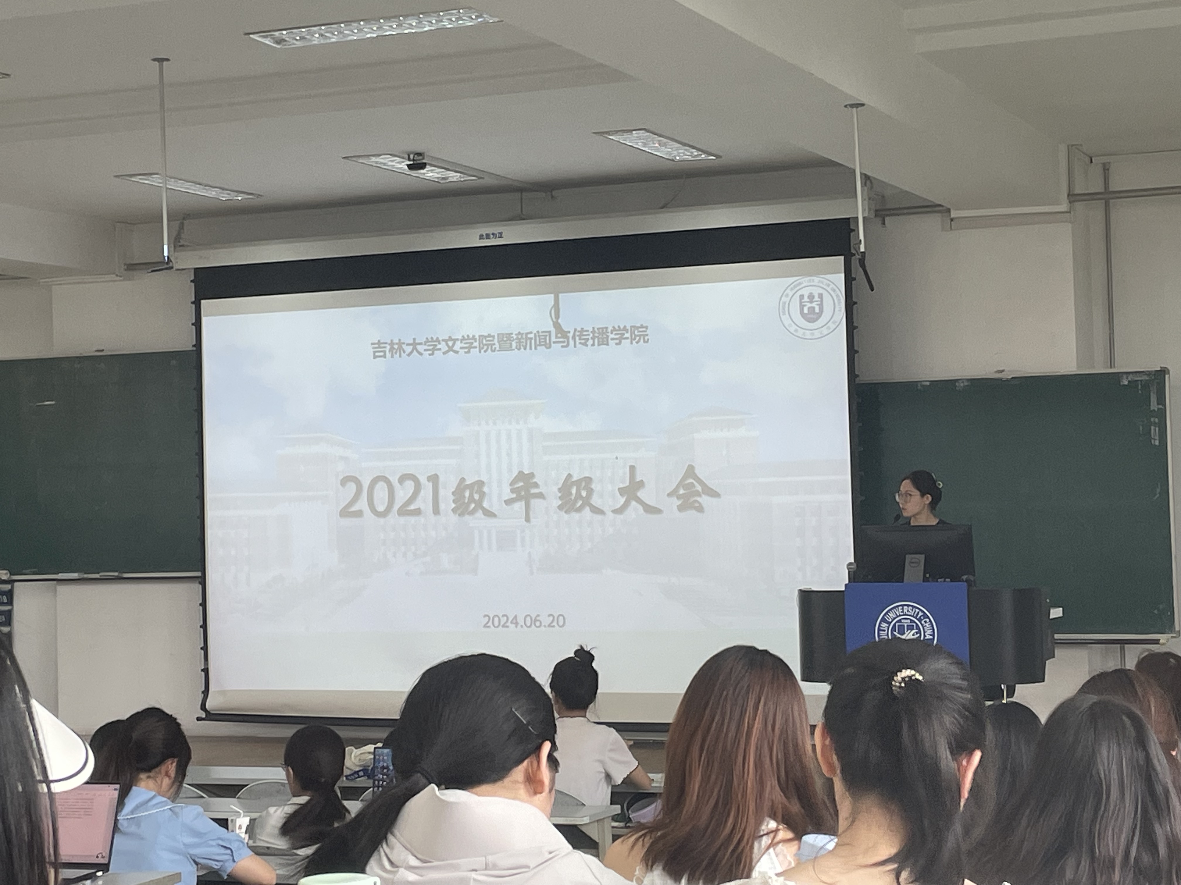 2021级本科生6月年级大会于第三教学楼第九阶梯教室召开,辅导员杨佳欣老师和各位同学准时到场,会议在杨佳欣主持下顺利开展。