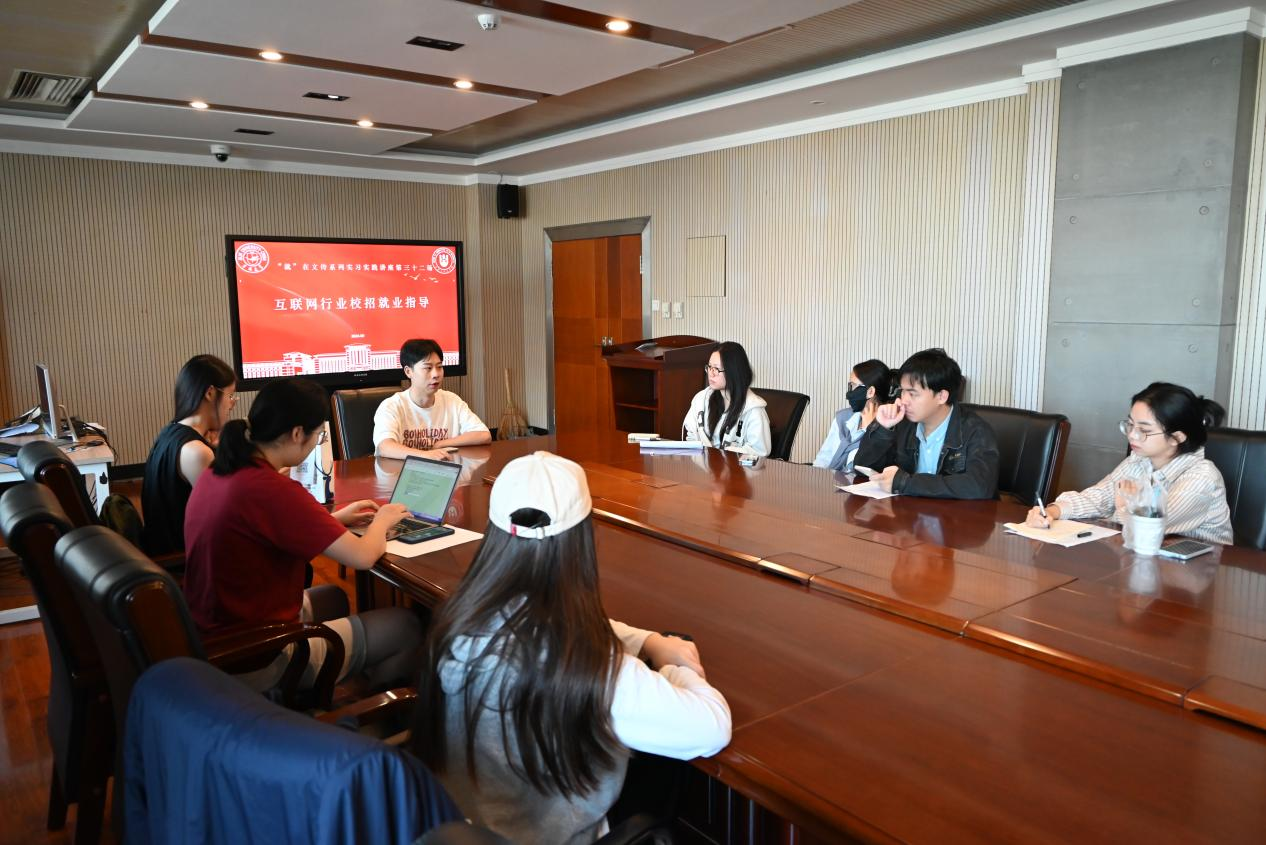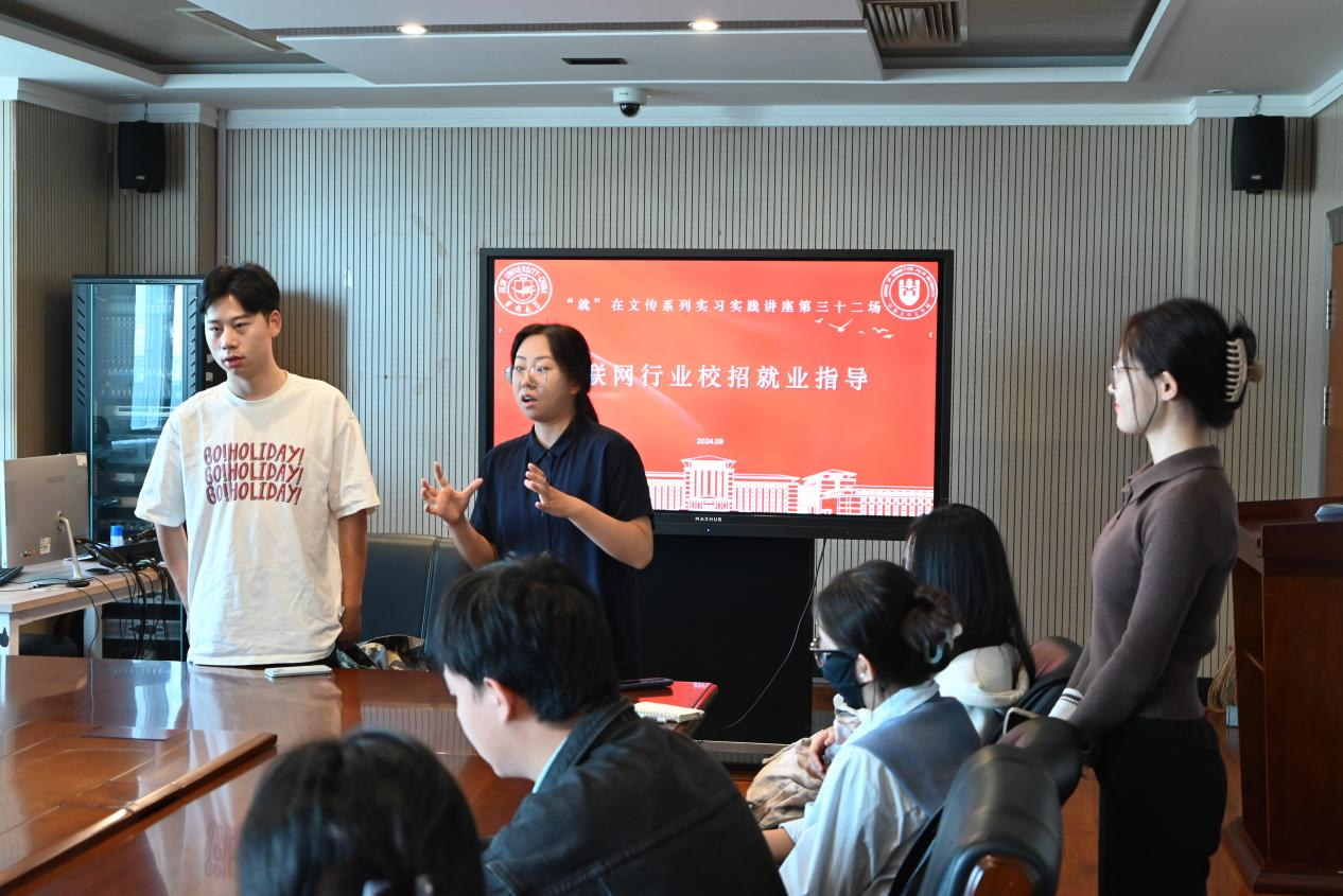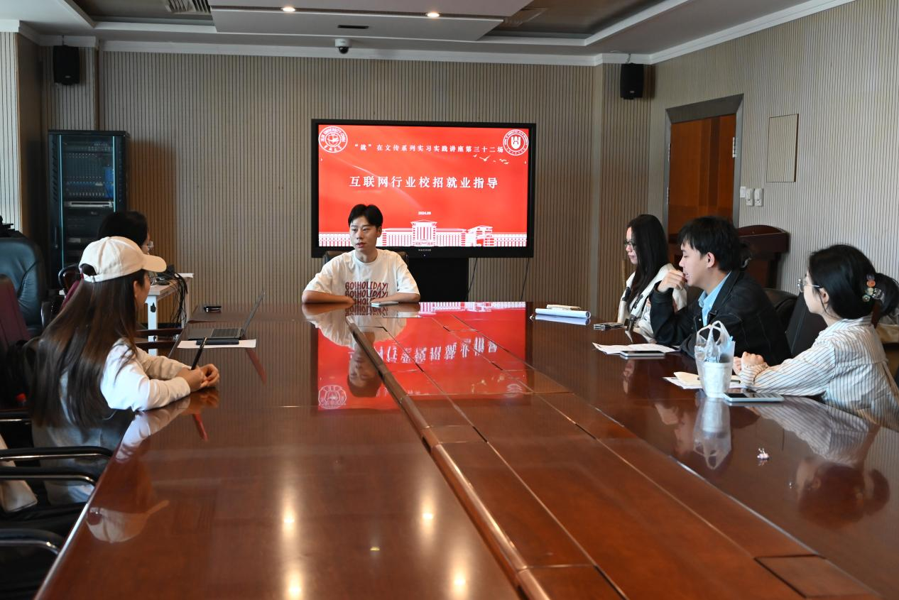 暨新闻与传播学院主办的“就”在文传系列实习实践报告会第三十二场——《互联网行业校招就业指导》在东荣大厦11楼会议室如期举行。本次讲座特邀了2017级广告学专业校友、现就职于阿里巴巴集团的雷航作为主讲嘉宾,为即将步入职场的同学们提供了宝贵的求职指导和经验分享。学院党委副书记杨一博和部分毕业生同学参会,2021级辅导员杨佳欣主持会议。