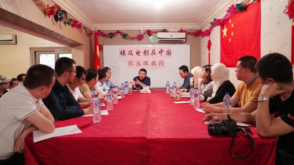 副院长张丛皞教授(中)为留埃以及本土学生学者作题为《埃及电影在中国》的专题讲座)
