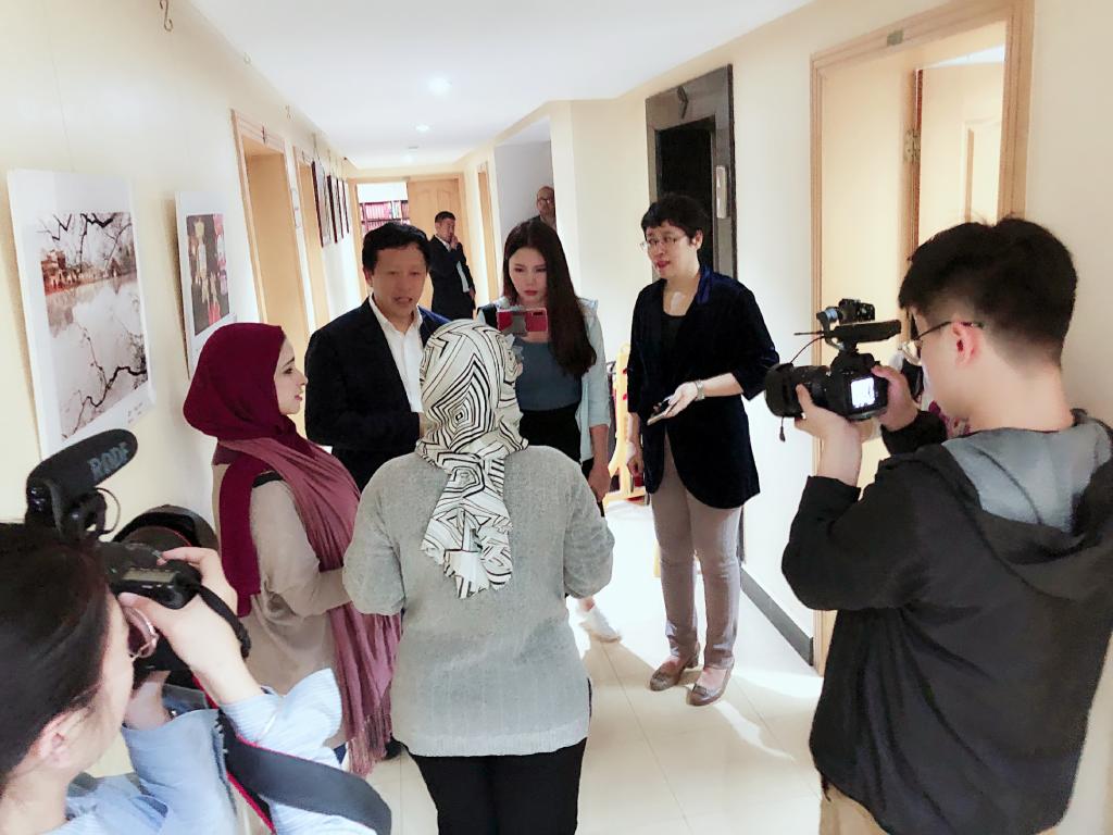 团队还与包括“中国阿拉伯友好杰出贡献奖”获得者、艾因·夏姆斯大学穆赫森·法尔加尼教授,“中华图书特殊贡献奖”获得者、沙特国王大学中文系主任哈赛宁副教授,爱资哈尔大学中文系主任阿齐兹教授,亚历山大大学中文系主任纳西德教授,诗人、翻译家、小说家赛义德·顾德,青年翻译家、作家、评论家米拉,自由撰稿人、诗人、翻译家雅拉,出版家、翻译家、社会活动家艾哈迈德·白鑫,翻译家、比较文化学者叶海亚以及翻译家、中国学学者金浩天、埃及国家翻译中心市场总监塔米儿等在内的数十位汉语相关人士进行深入交谈,了解传播现状的同时,互相表达了进一步合作的愿景。此外,对本土报社的考察也在项目团队的关注视域之内,对阿拉伯世界第一大文化类报纸——《文学消息报社》和埃及希克迈特文化投资(出版)有限公司的深层次交流,使我们了解到他们对中国语言文化传播做出的卓越贡献。为加深中埃双方文明互鉴、文化交流,张丛皞教授进行了题为《埃及电影在中国》的专题讲座,深受留埃学生学者好评。