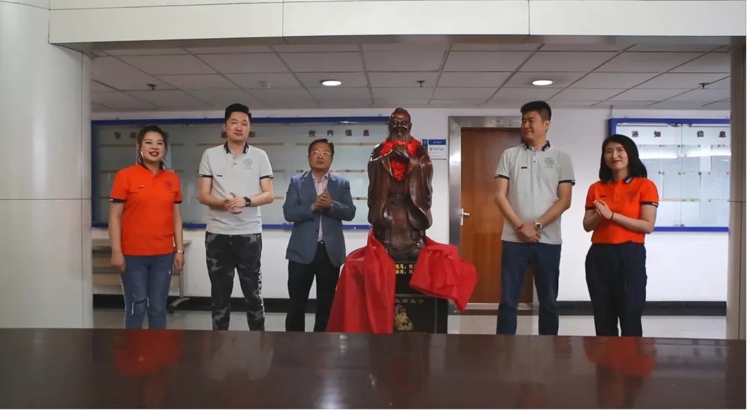 座谈会结束后,参会一行人举行了校友赠礼的揭幕仪式。精雕细刻、栩栩如生的孔子像矗立在十楼大厅内,正像黄色韩漫